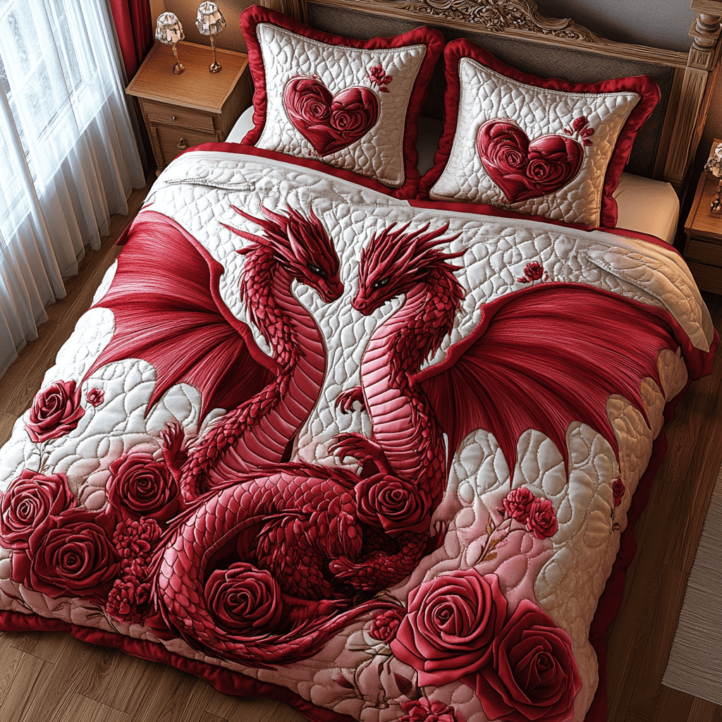 $79.95 – $109.95Price range: $79.95 through $109.95Rushgleam Dragon Quilted Bedding Set Roaring Hearts Bedspread Set Good Valentine Day Gifts