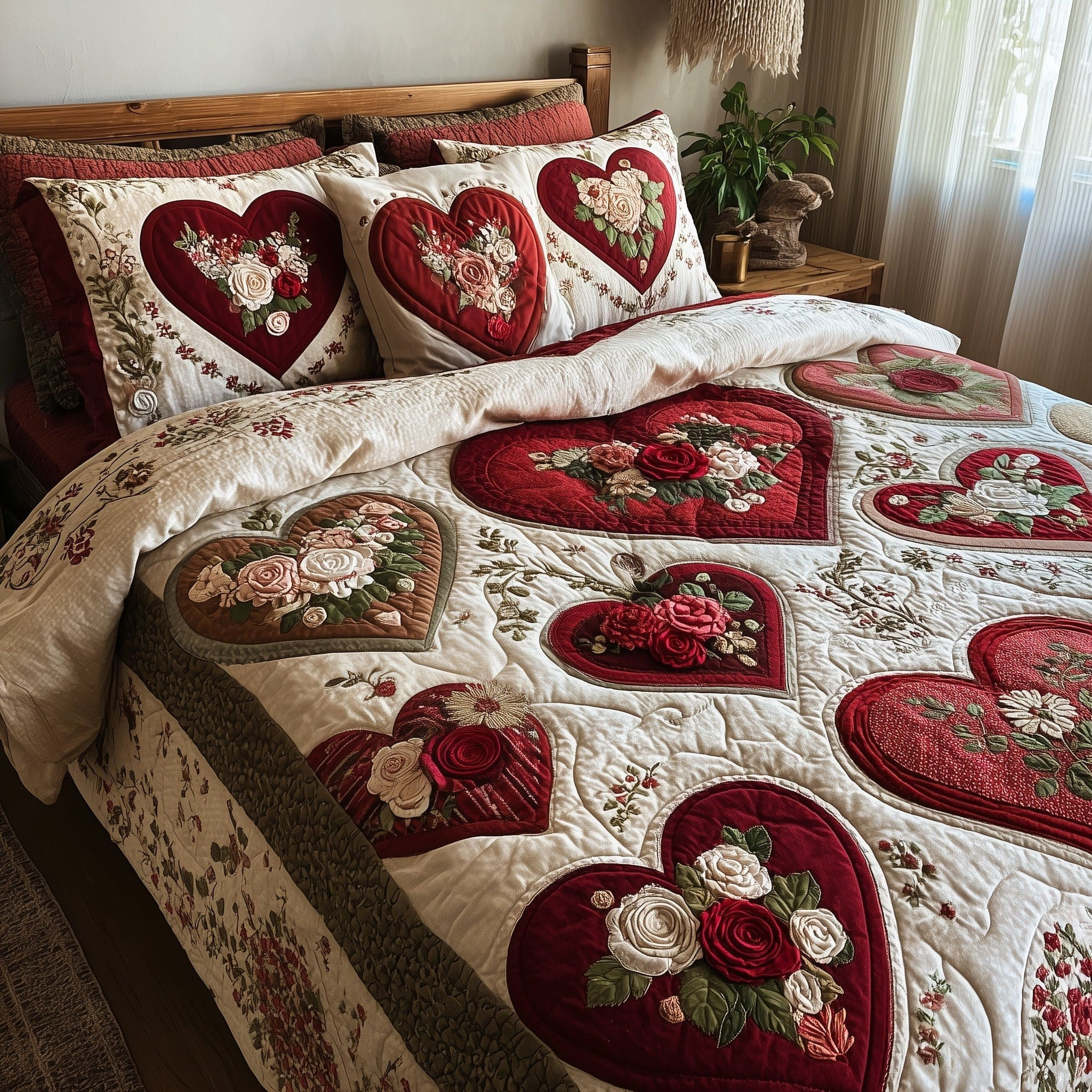 Rushgleam Heart And Rose Quilted Bedding Set Valentine Day Gift Friend Exchange Ideas