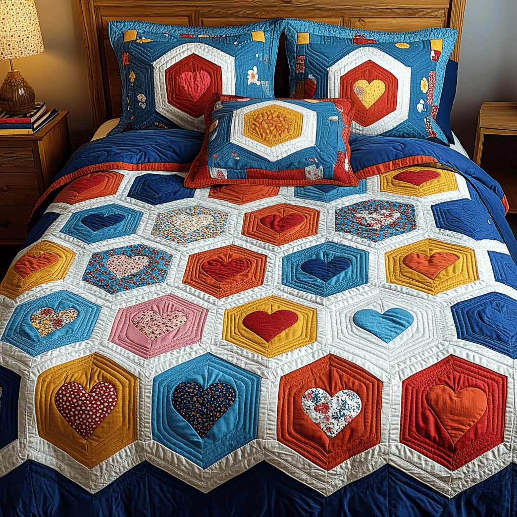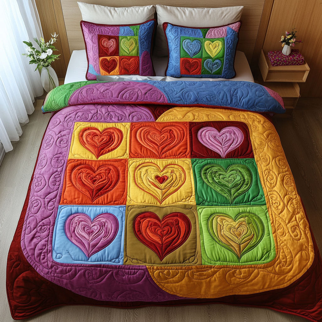 Rushgleam Heart Quilted Bedding Set Colorful Heart Bed Sheet Set Valentine Day Presents For Mother
