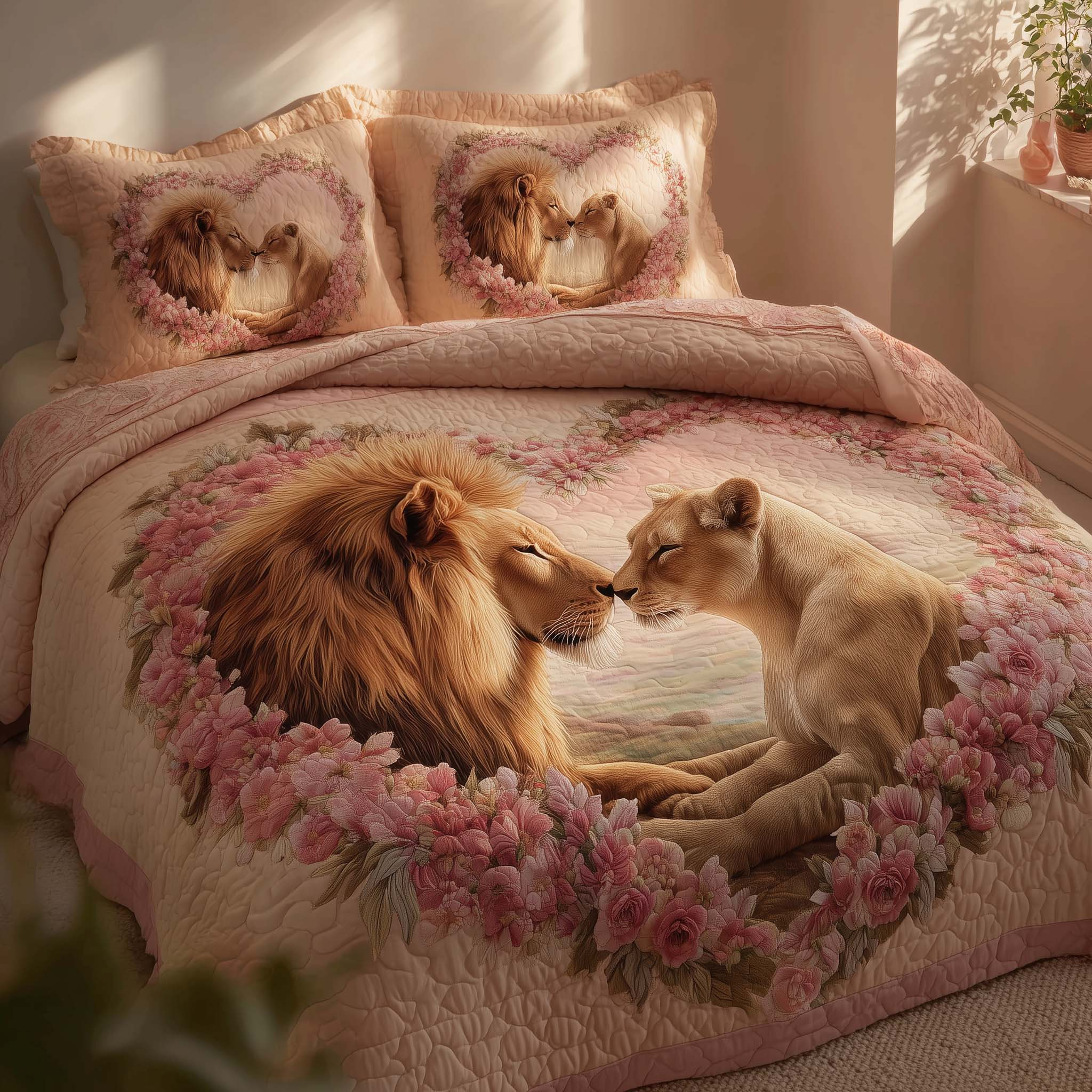 Rushgleam Lion Quilted Bedding Set Silent Roar Of Love Best Duvet Cover Valentine Day Ideas For Him