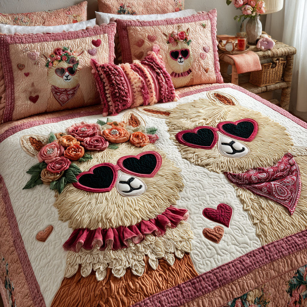 Rushgleam Llama Quilted Bedding Set Llama Bed Sheet Set Valentine Day Gift Ideas For Girlfriend