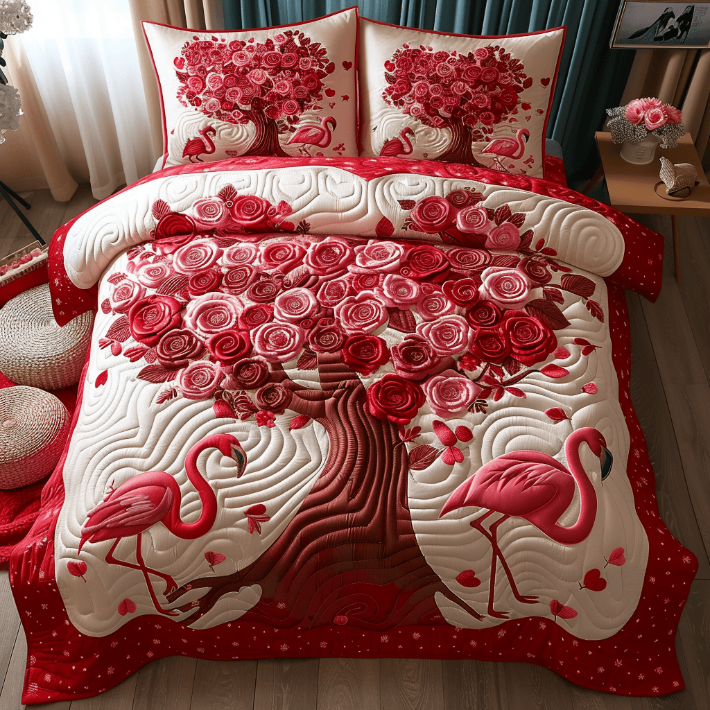 Rushgleam Lovebird Haven Quilted Bedding Set Aesthetic Home Decor Best Valentines Gifts For Her
