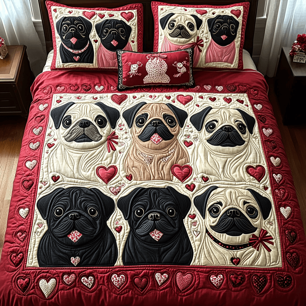 Rushgleam Lovely Pug Quilted Bedding Set Pug Dog Cute Aesthetic Best Valentines Room Ideas For Dad