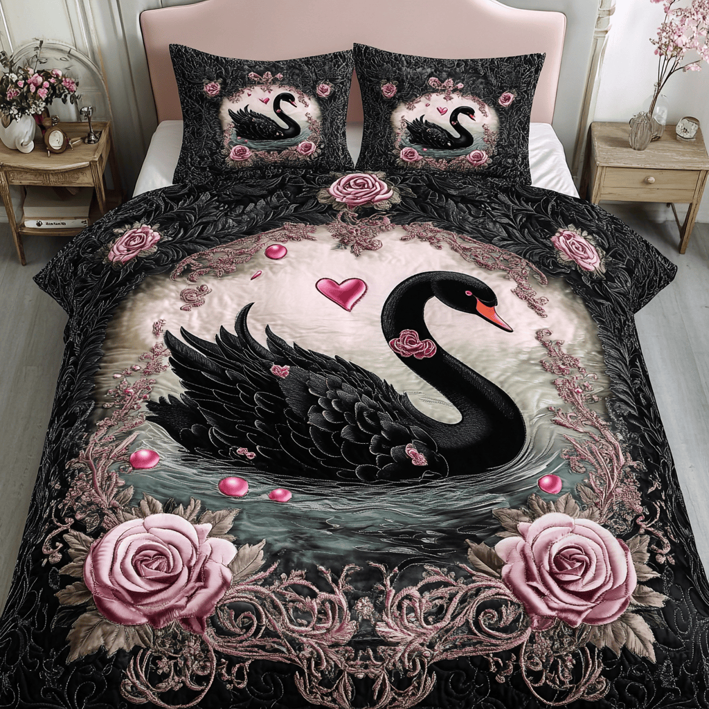 Rushgleam Loving Waters Quilted Bedding Set Black Swan Vintage Bedroom Decor Valentine’S Day Gifts