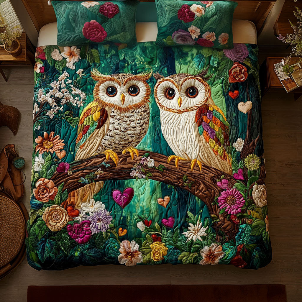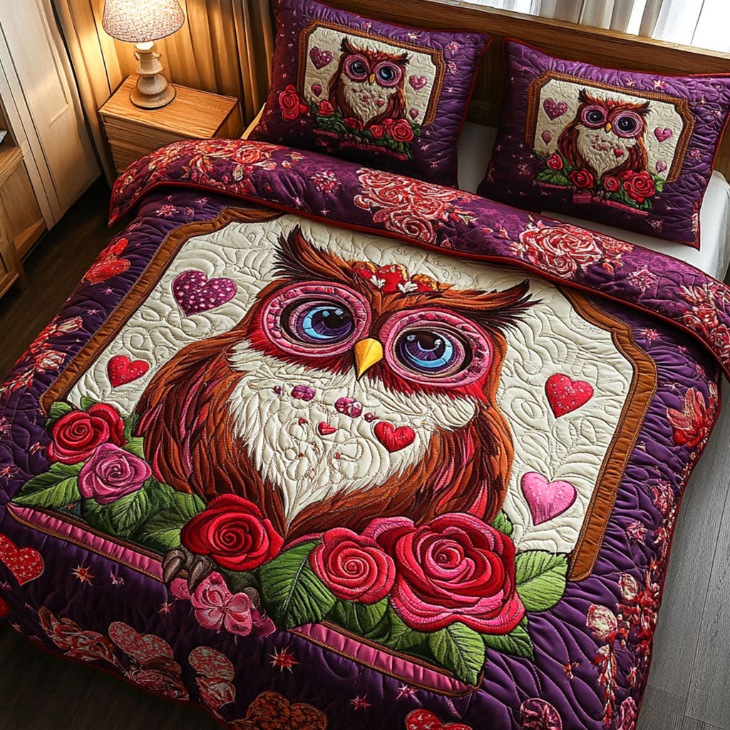 Rushgleam Nocturnal Romance Quilted Bedding Set Owl Couple Room Decor Valentines Gifts For Ladies