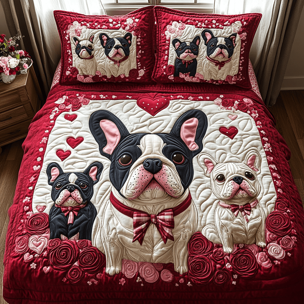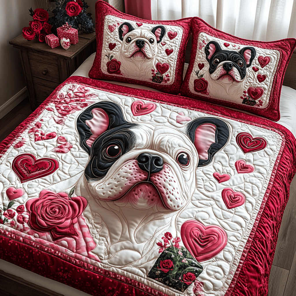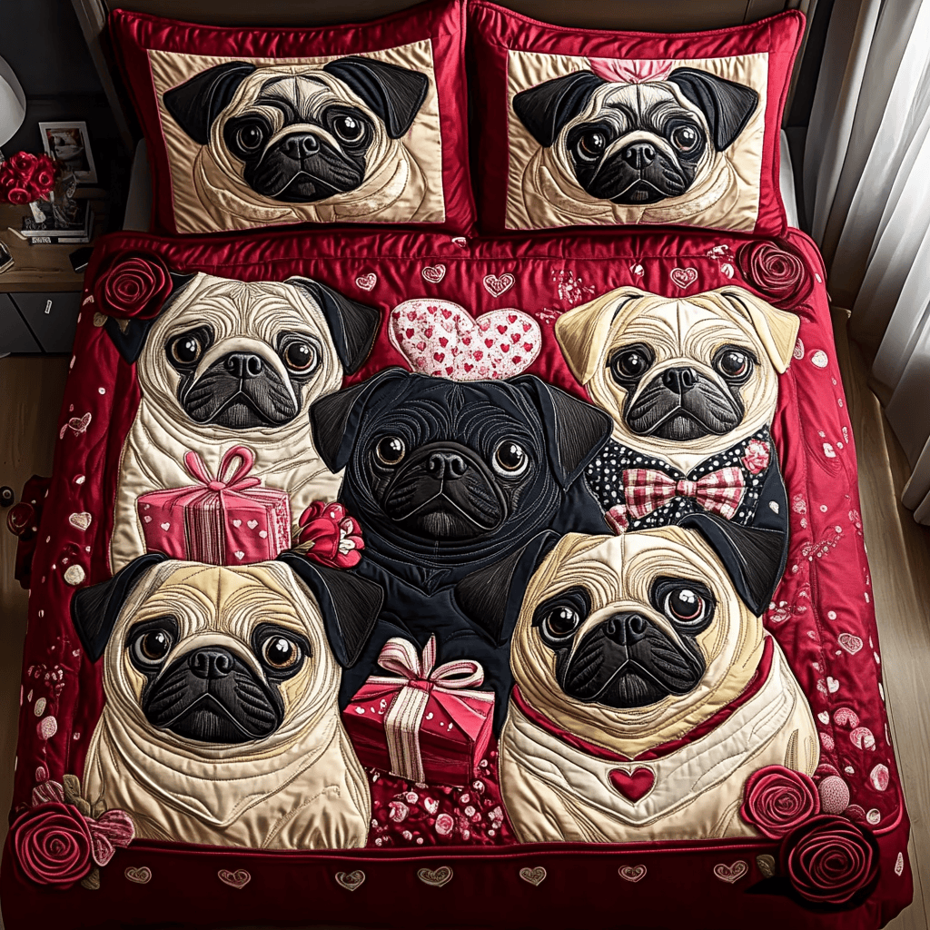 Rushgleam Pug Charm Quilted Bedding Set Valentine Day Gift Ideas For Family Gift Exchange