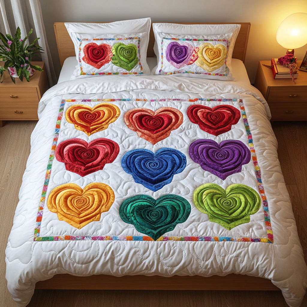 Rushgleam Rainbow Hearts Quilted Bedding Set Valentine Day Gifts Ideas For Daughter In Law
