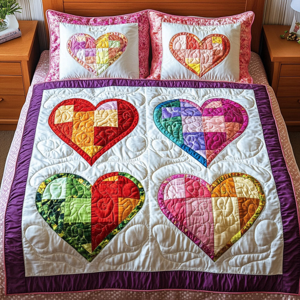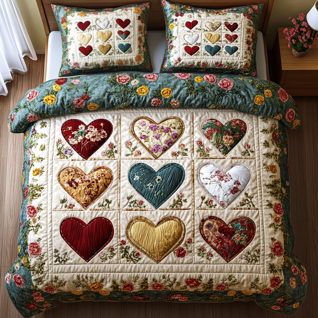 Rushgleam Rustic Pattern Hearts Quilted Bedding Set Cozy Home Decor Unique Valentine’s Day Ideas