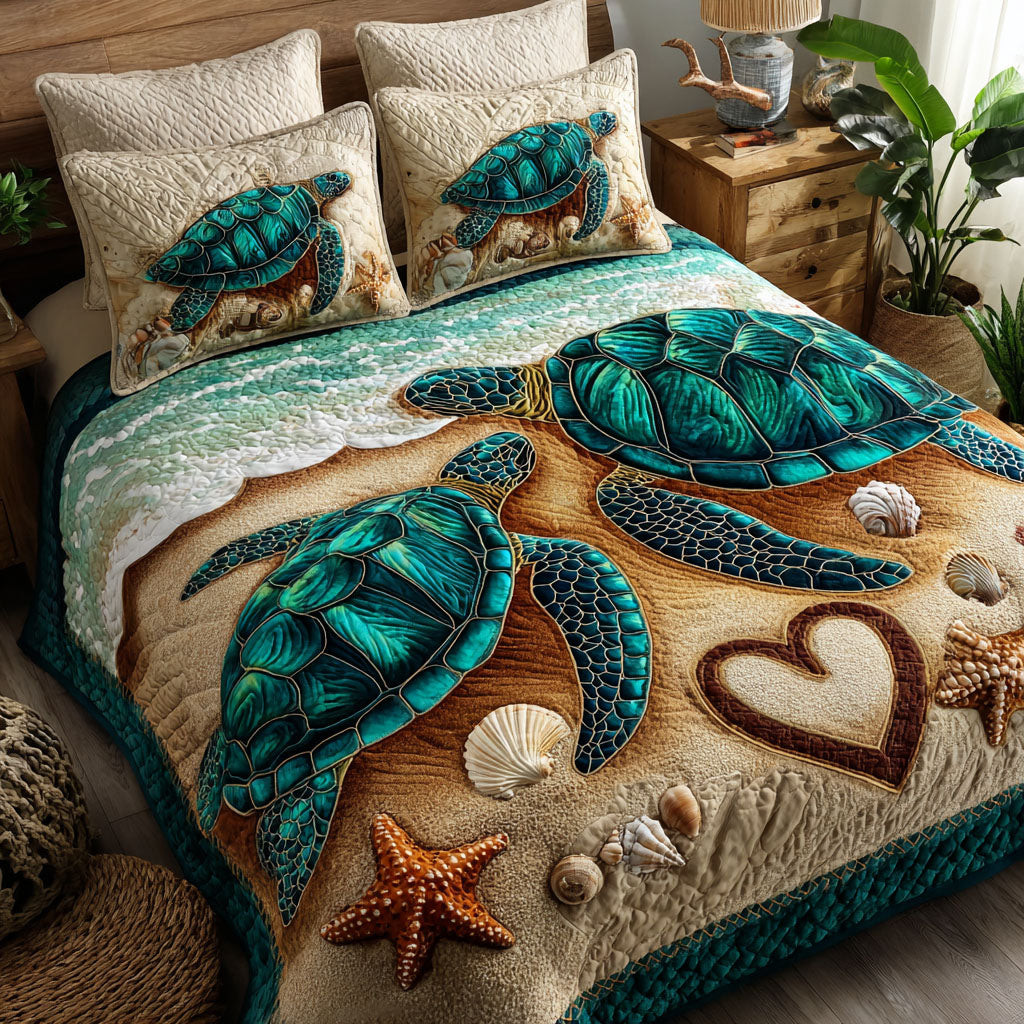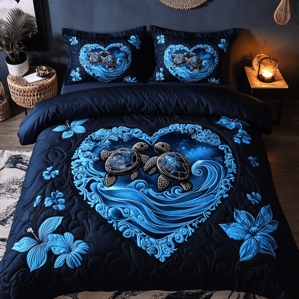 Rushgleam Sea Turtle Shell Serenity Quilted Bedding Set Whole Family Valentine Day Gift Ideas