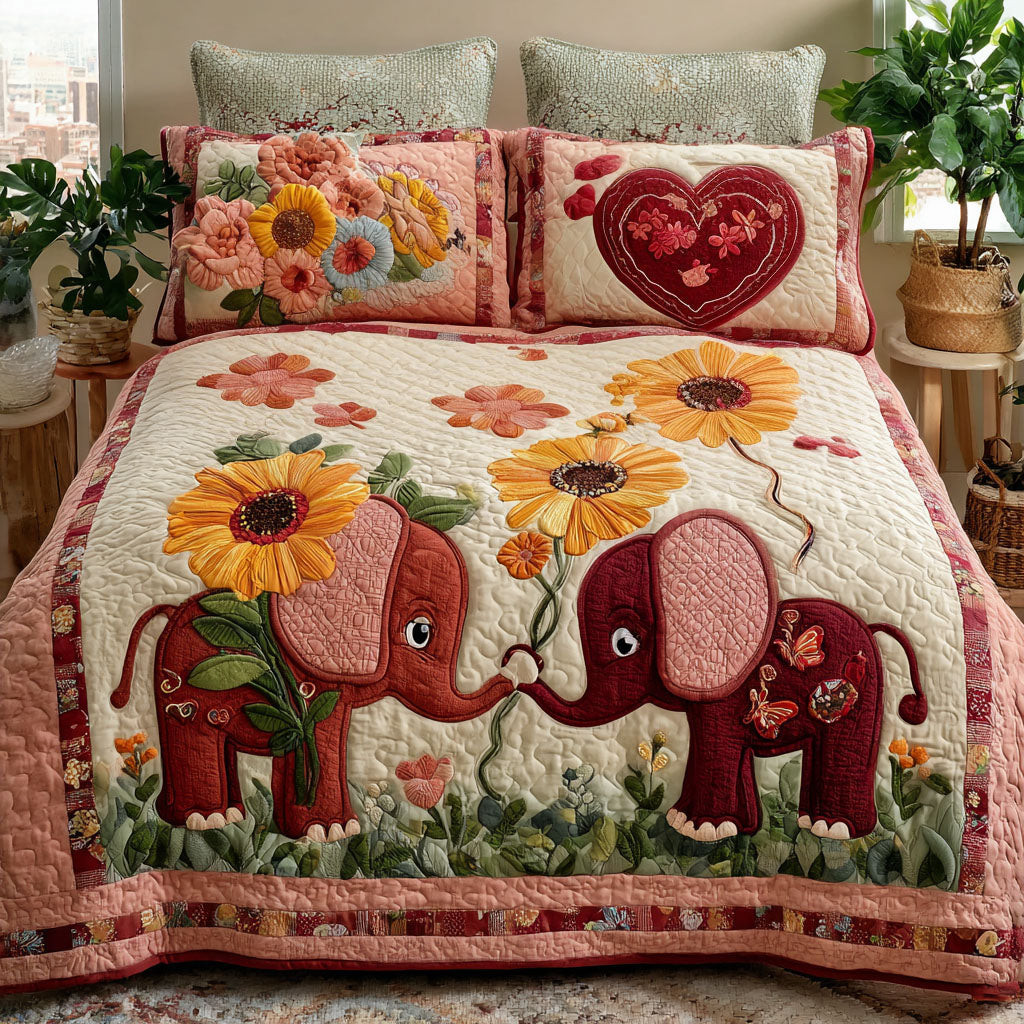 Rushgleam Shared Moments Quilted Bedding Set Elephant Couple Valentines Bedroom Decor Gift For Men
