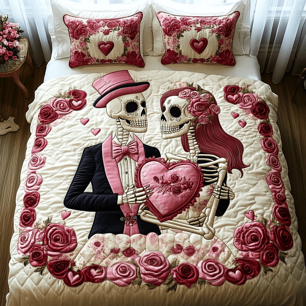 Rushgleam Skeleton Eternal Love Quilted Bedding Set Best Gifts For Couple For Valentine Day