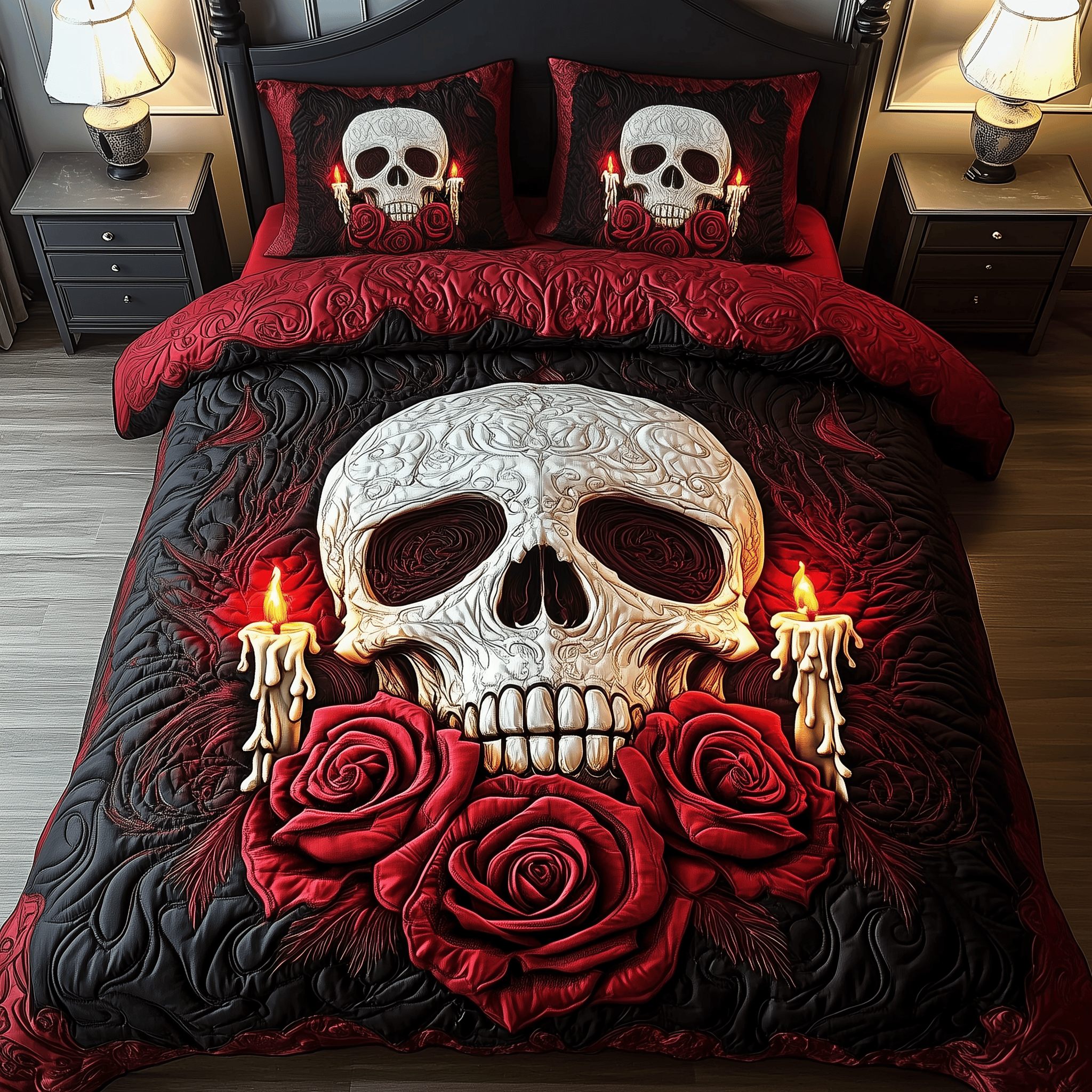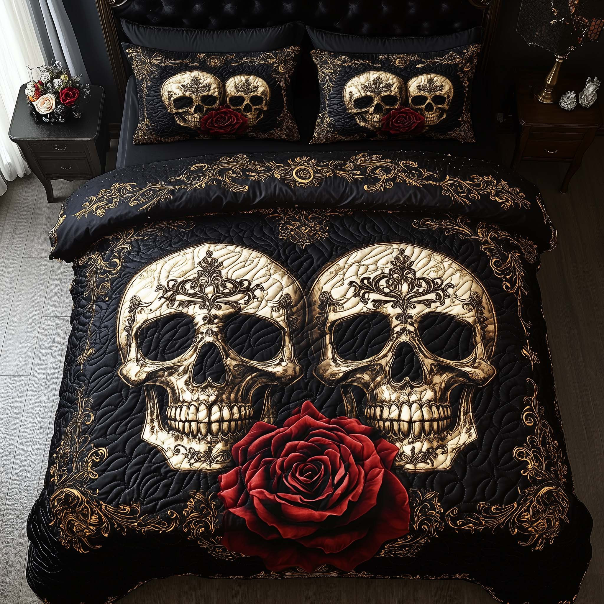 $79.95 – $109.95Price range: $79.95 through $109.95Rushgleam Skull Rose Dinner Quilted Bedding Set Valentine Day Gift Ideas For Her