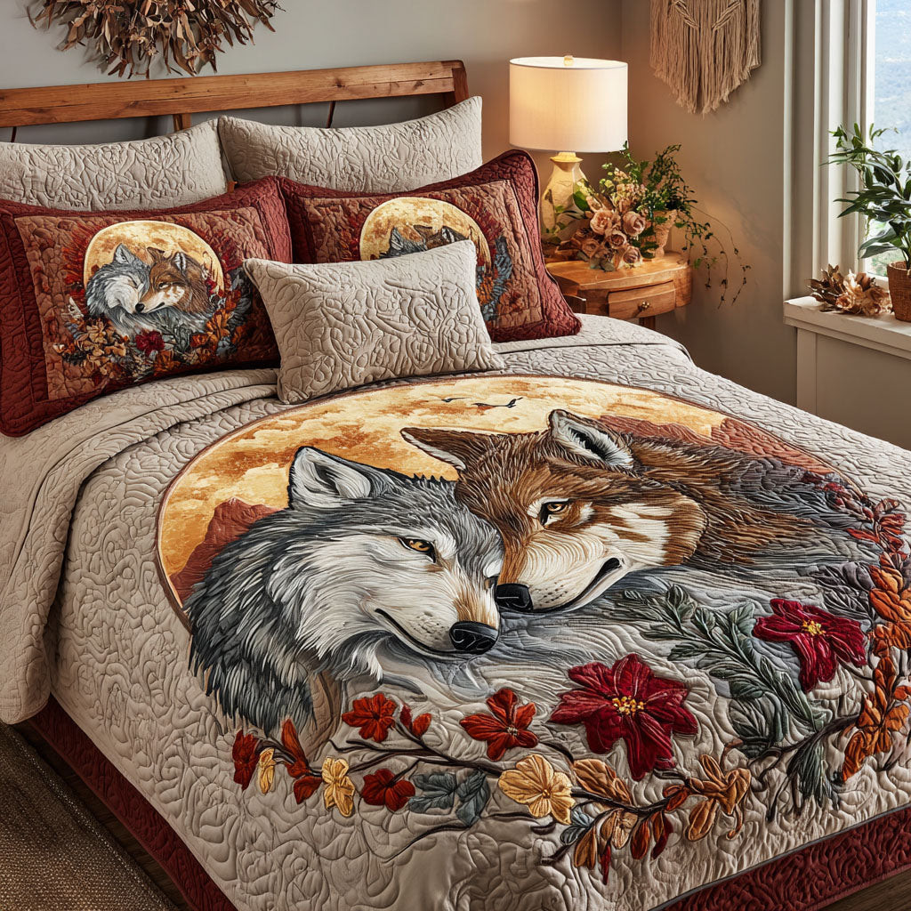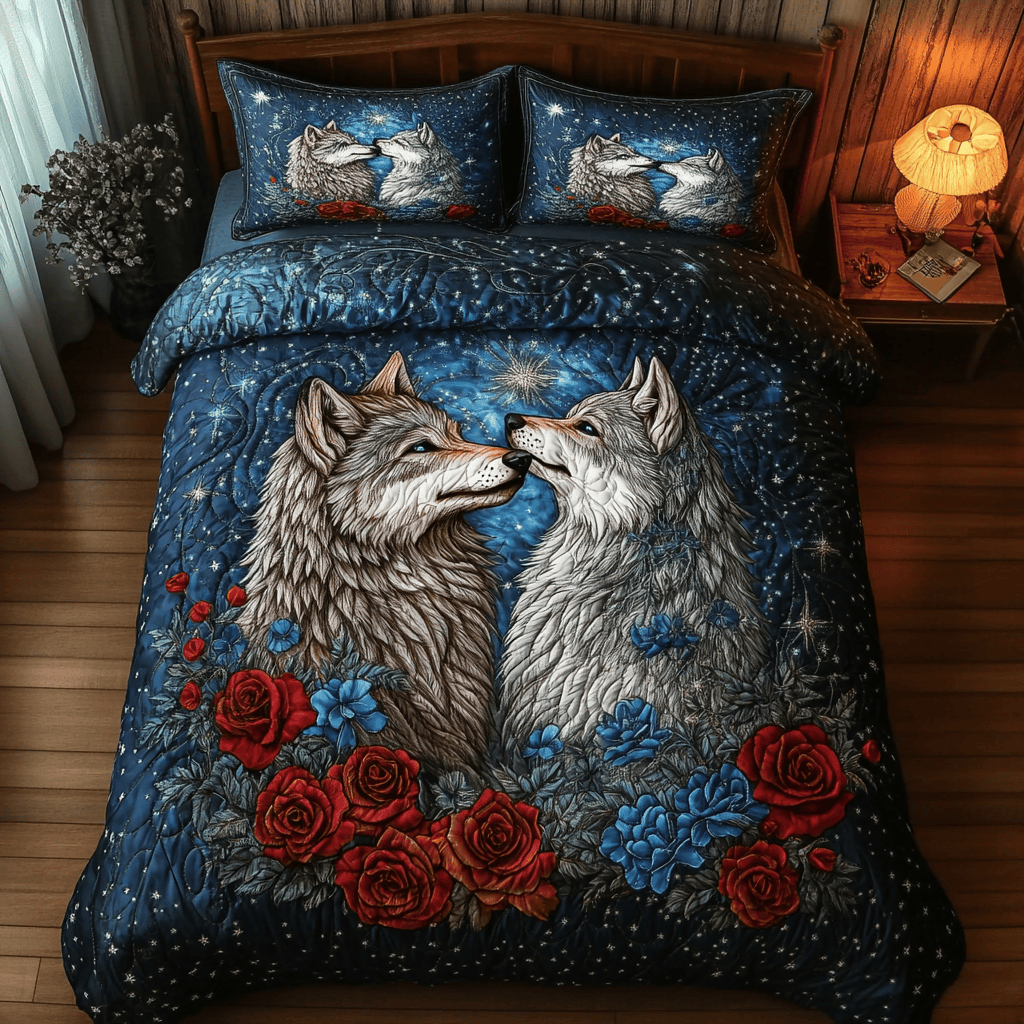 Rushgleam Wolf Bound Hearts Quilted Bedding Set Nice Valentine Day Gift For Father In Law