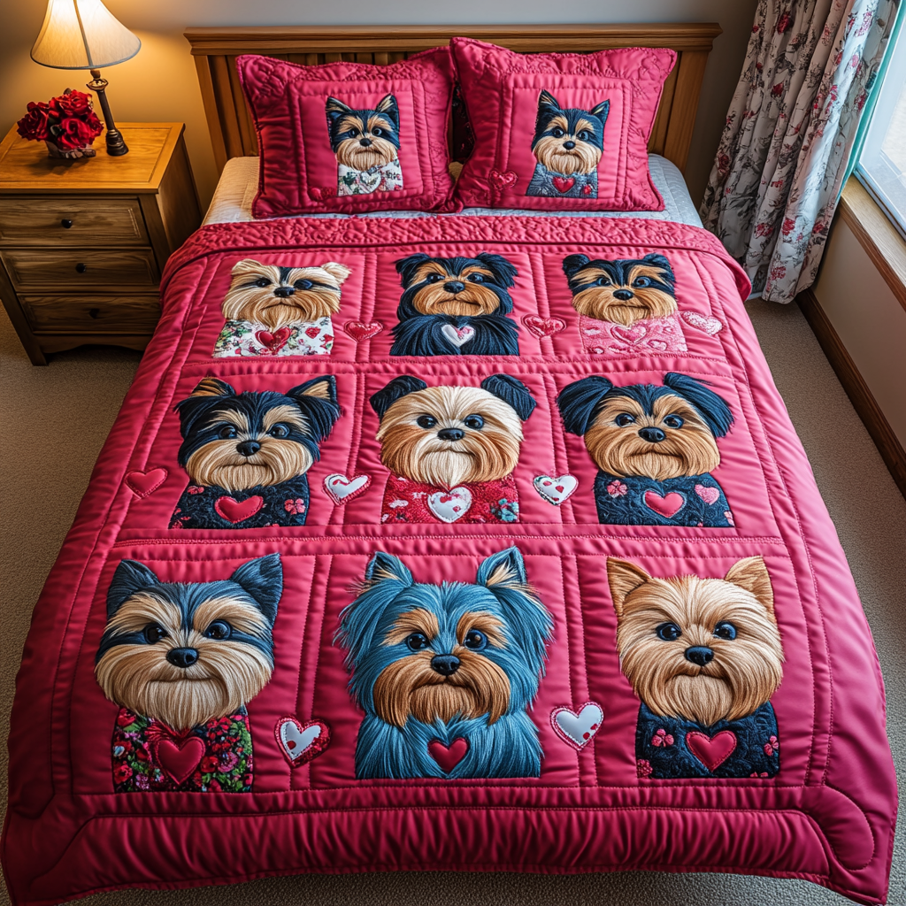 Rushgleam Yorkie Love Quilted Bedding Set Cozy Home Decor Unique Valentine’s Day Ideas