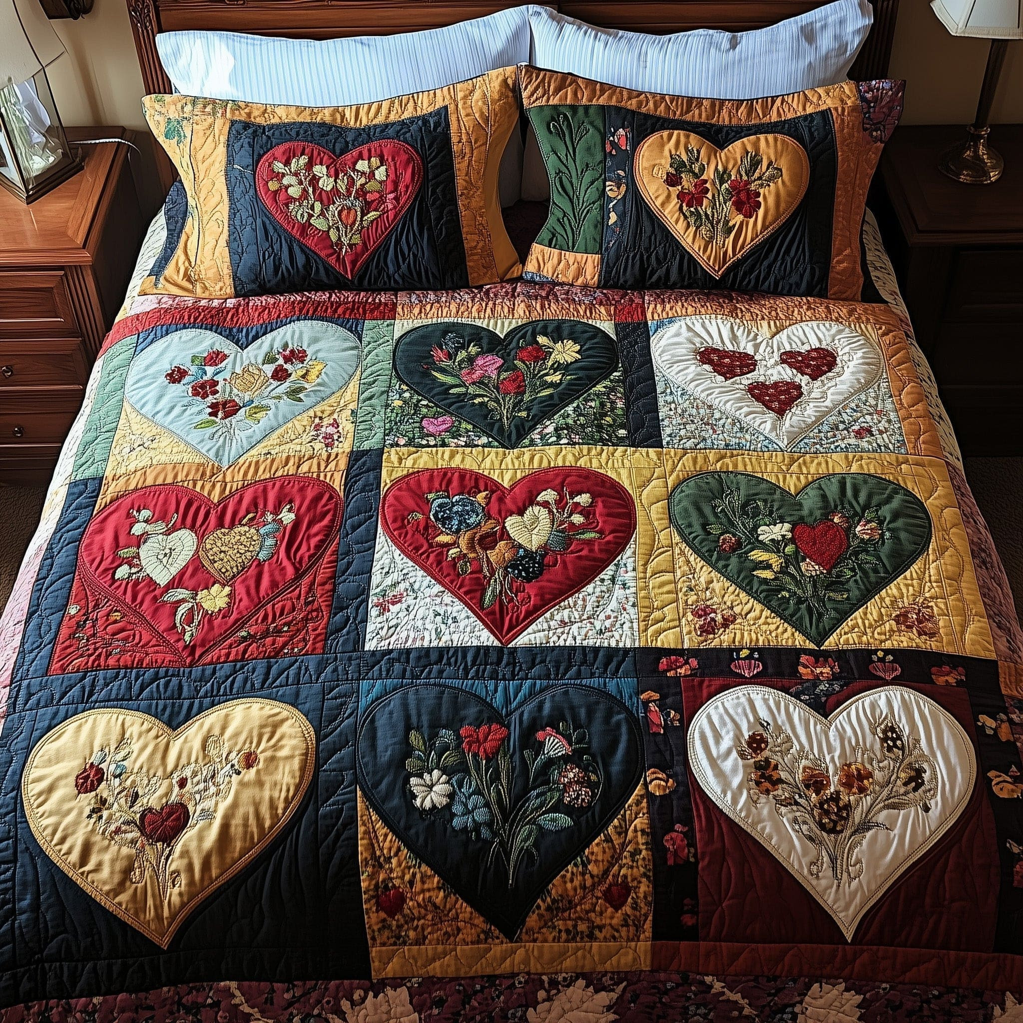 Rustic Bloom Heart Quilted Bedding Set Cute Bedroom Decor Sweet Heart Gift For Him