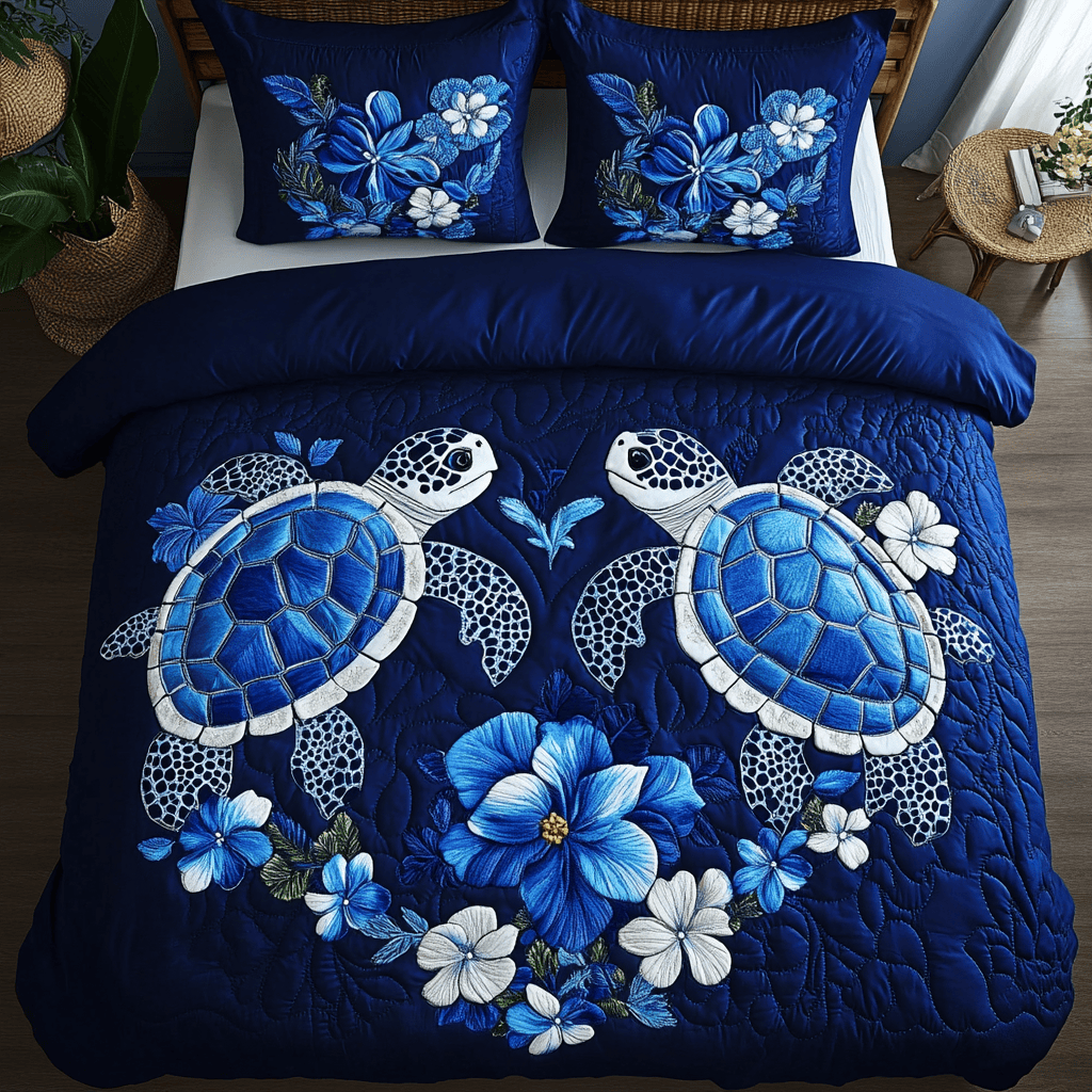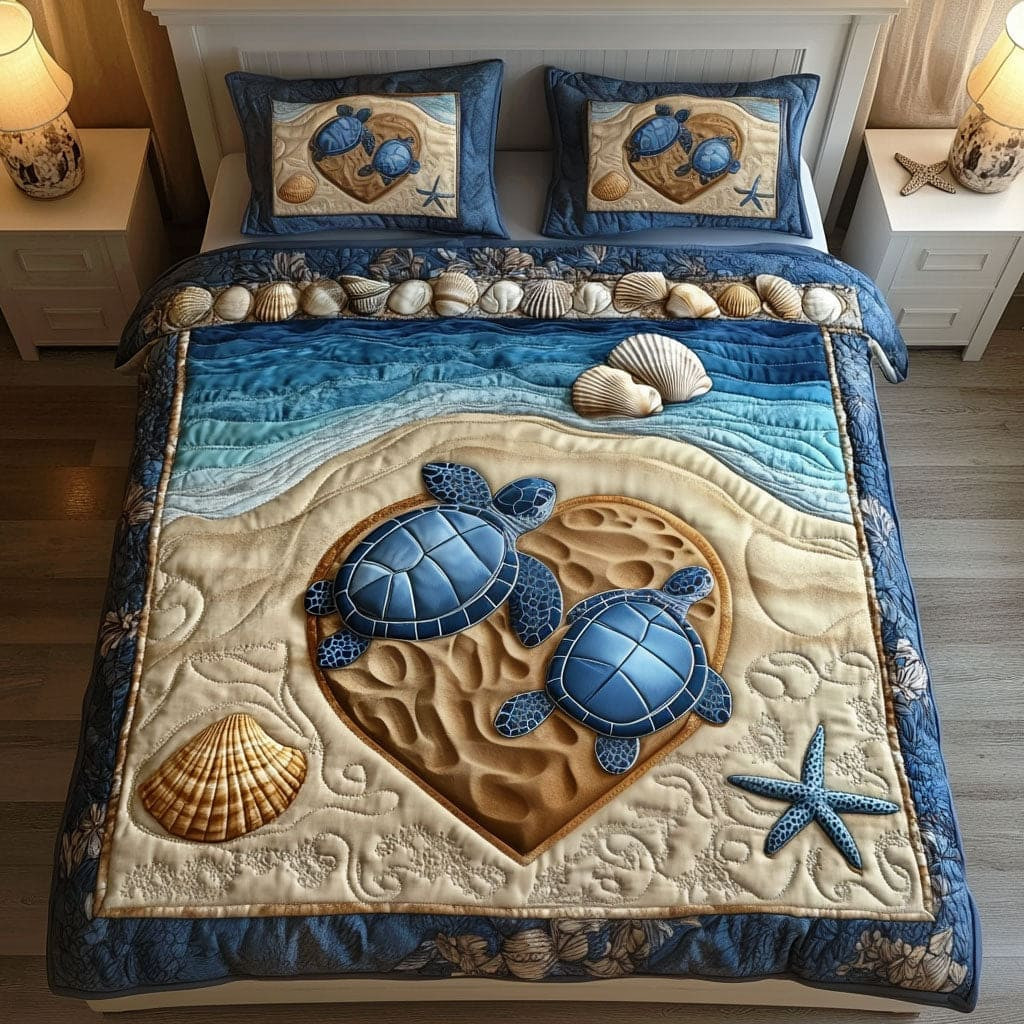 Sea Turtle Couple Quilted Bedding Set Best Sea Turtle Valentine Day Gift For Women