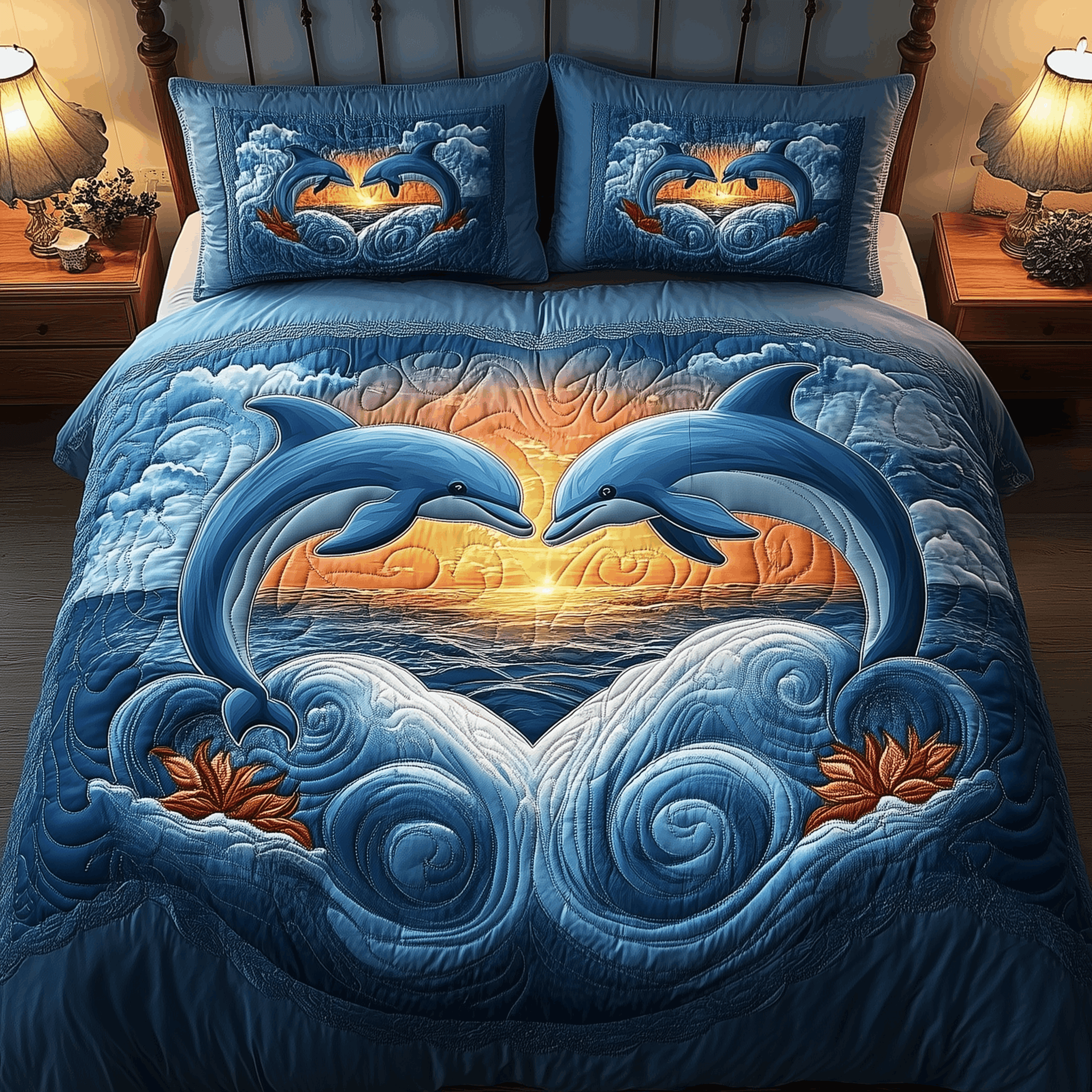 Dolphin Couple Quilted Bedding Set Room Decor Ideas Valentines Gifts Idea For Her
