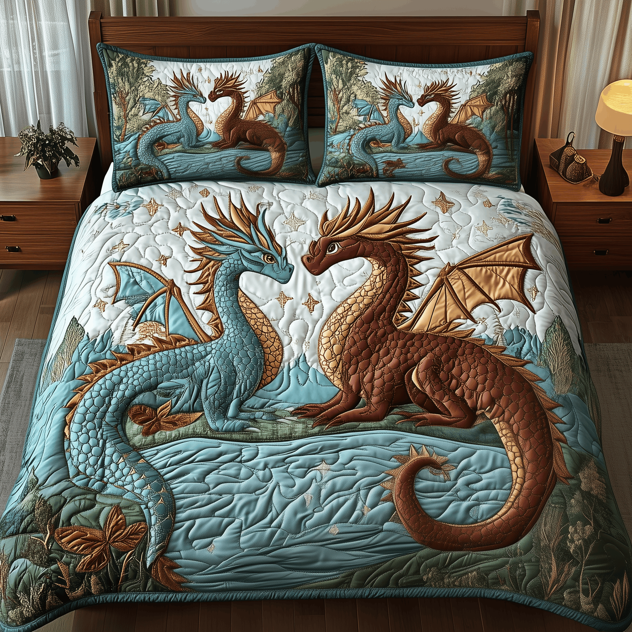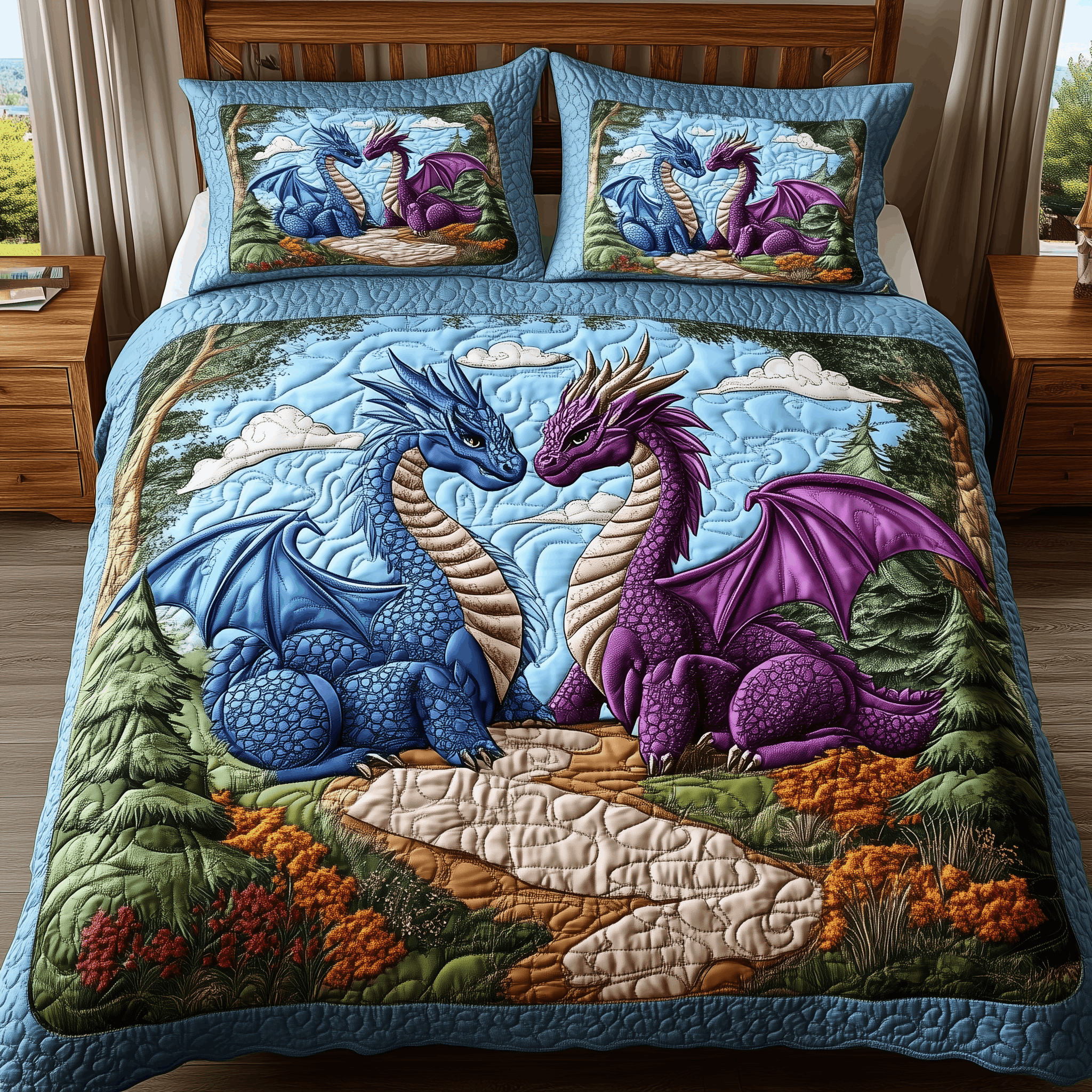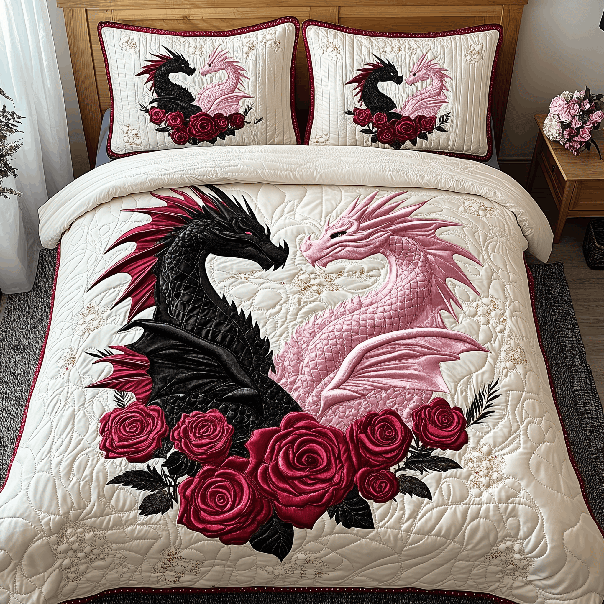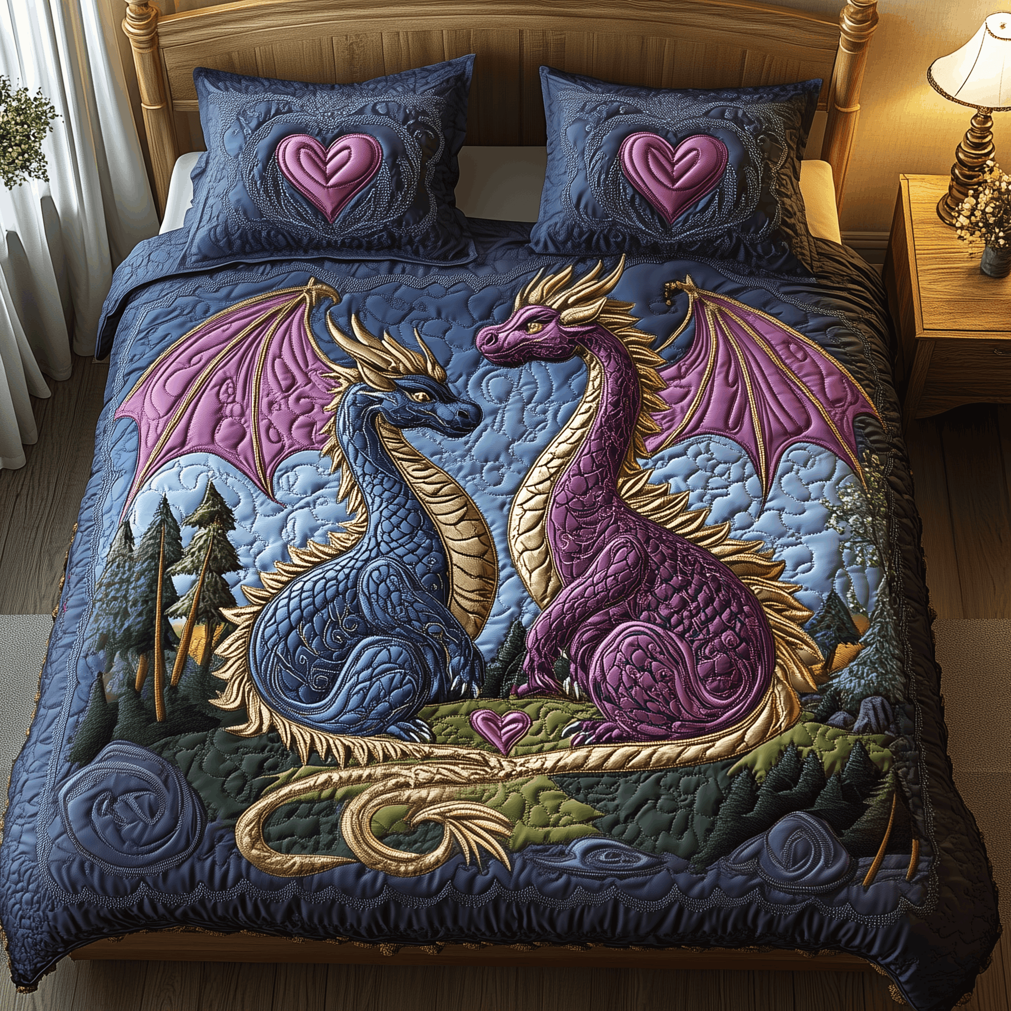 Dragon Love Affair Quilted Bedding Set Bedroom Decor Valentines Gifts For Her