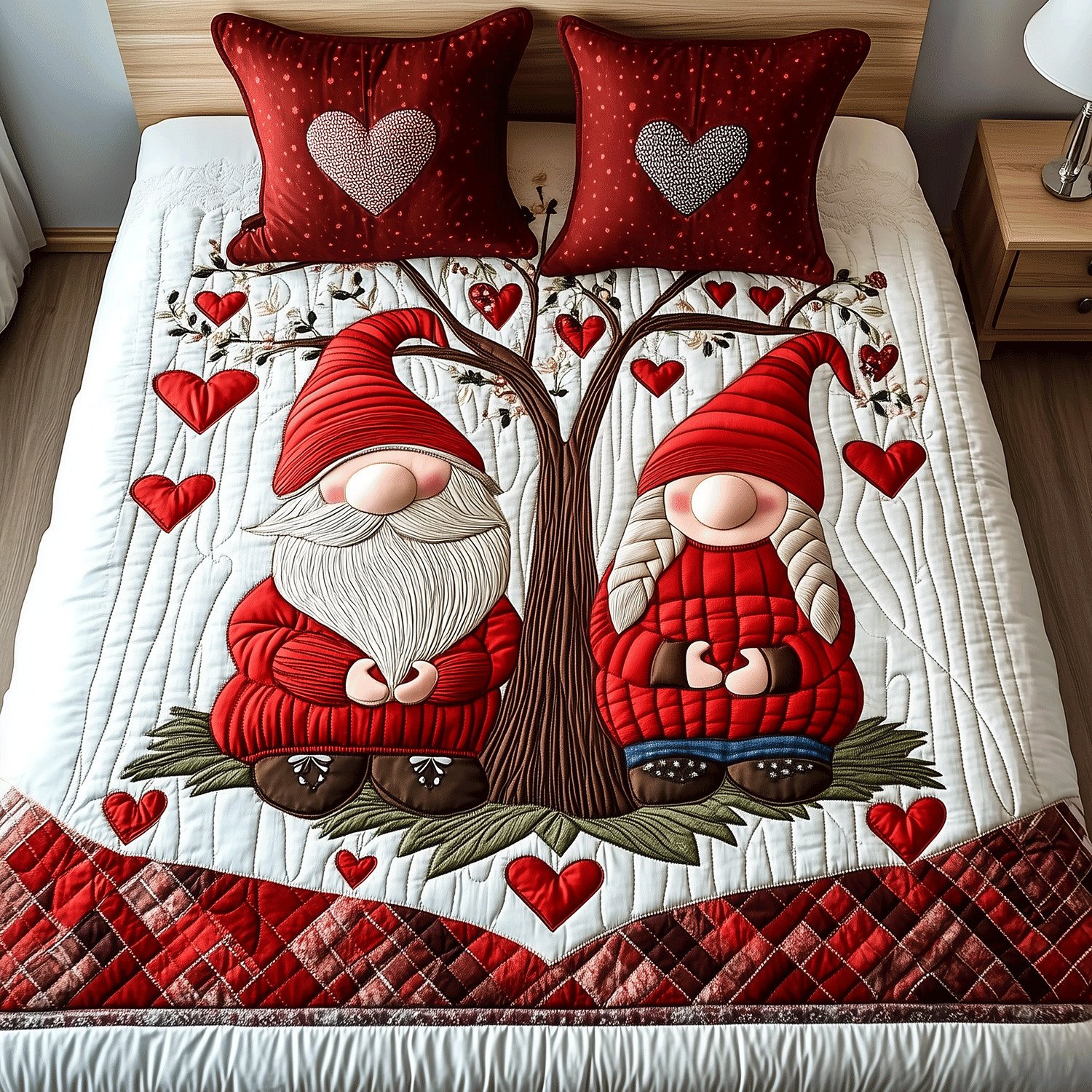 Gnome Lovers Quilted Bedding Set Rustic Home Decor Valentine Gift For Girlfriend