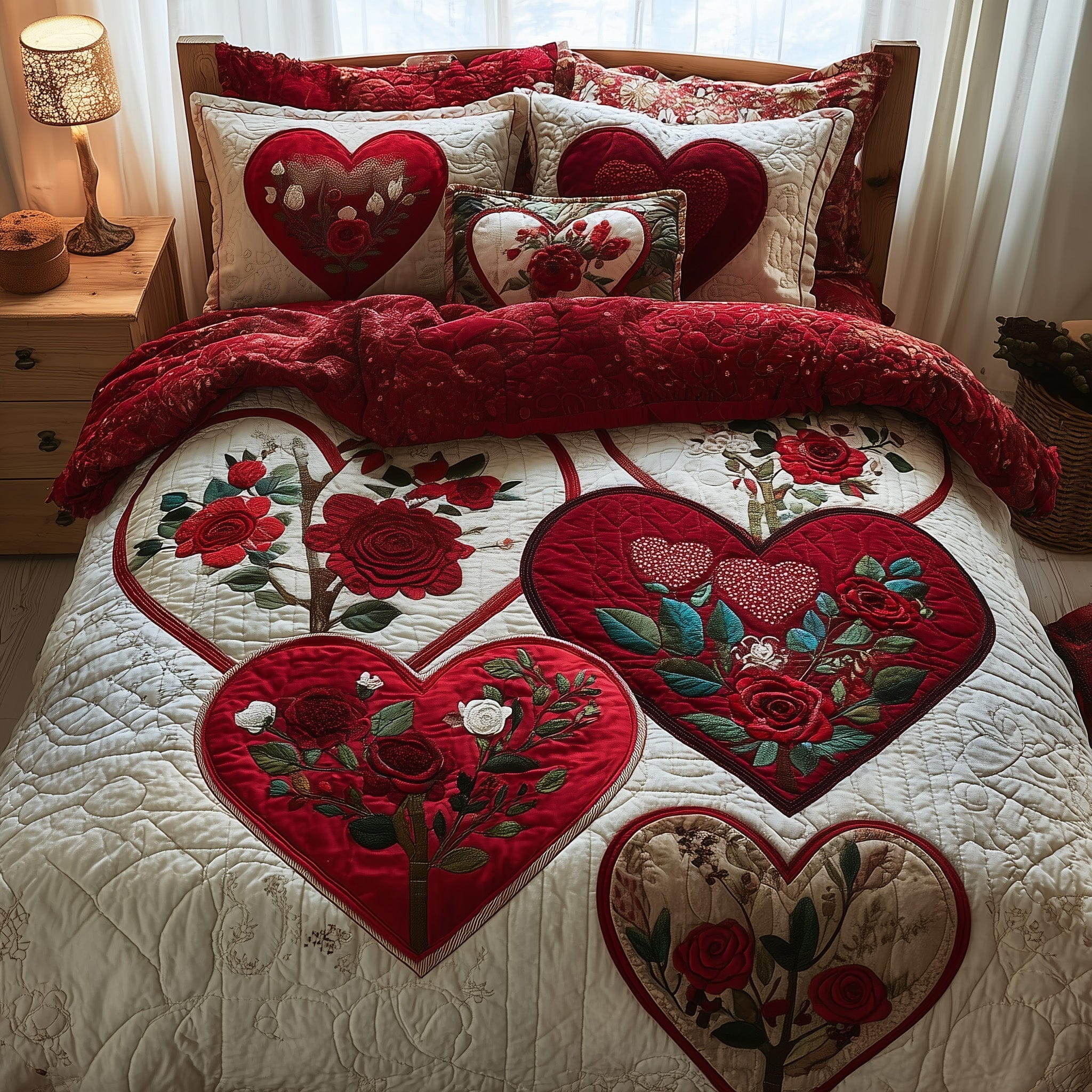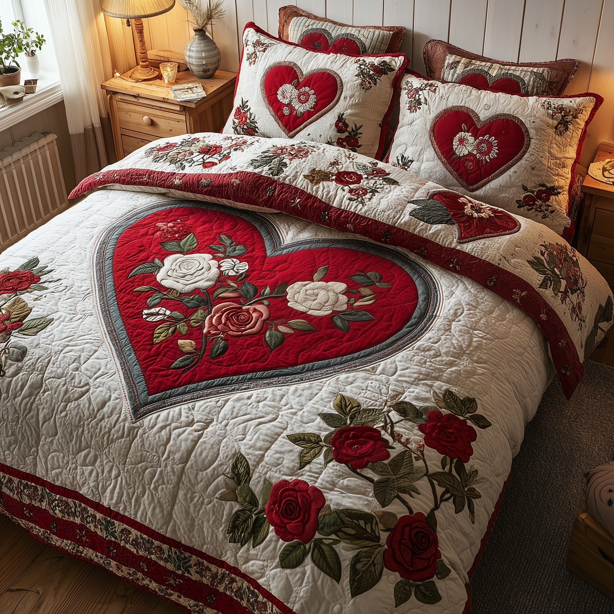 Heart And Rose Quilted Bedding Set Bedding Ideas Best Valentines Gifts For Lovers