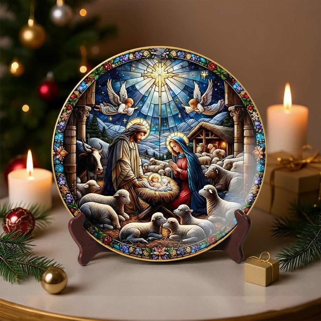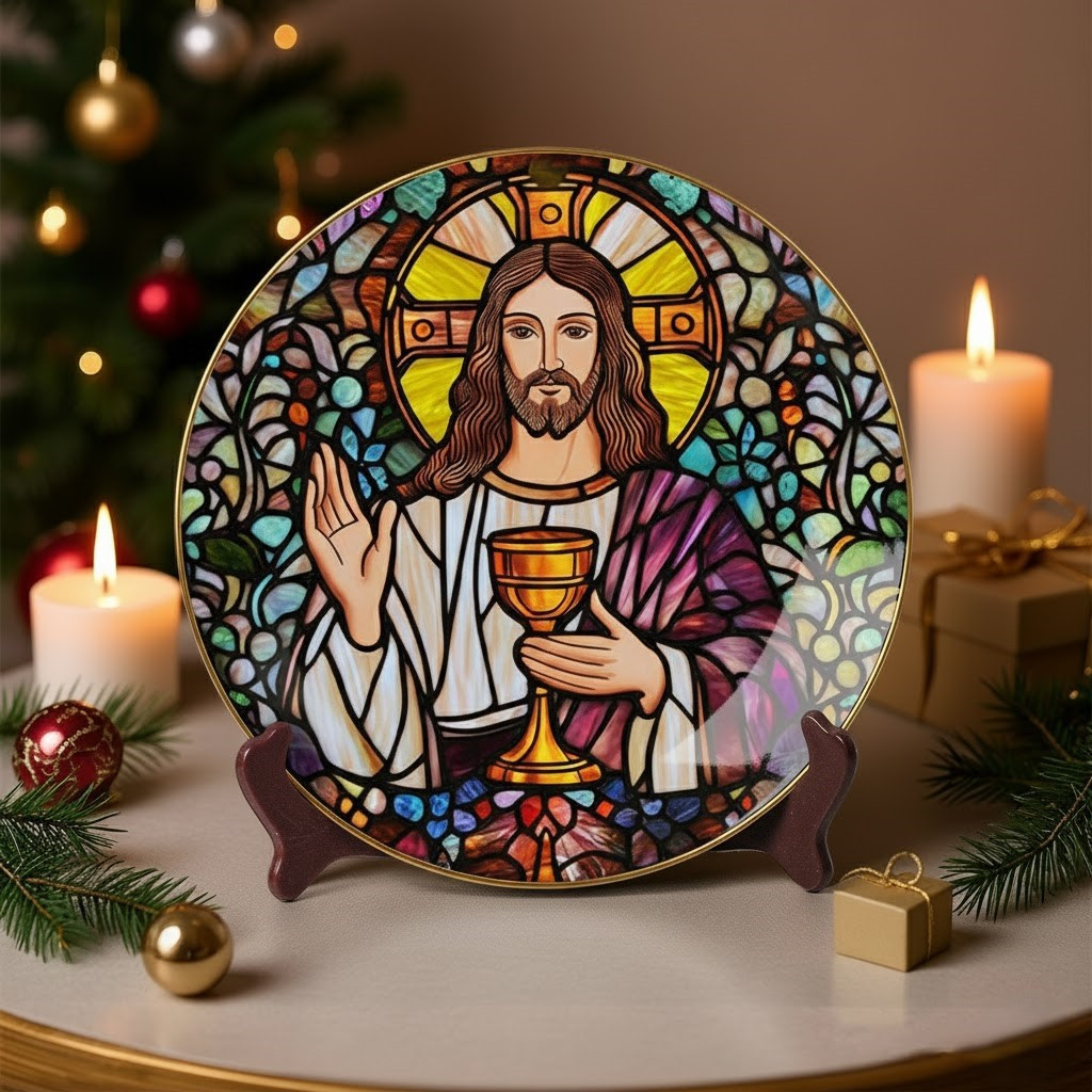 Stained Glass Savior Christmas Ceramic Plate Jesus Decorations Gifts For Christian