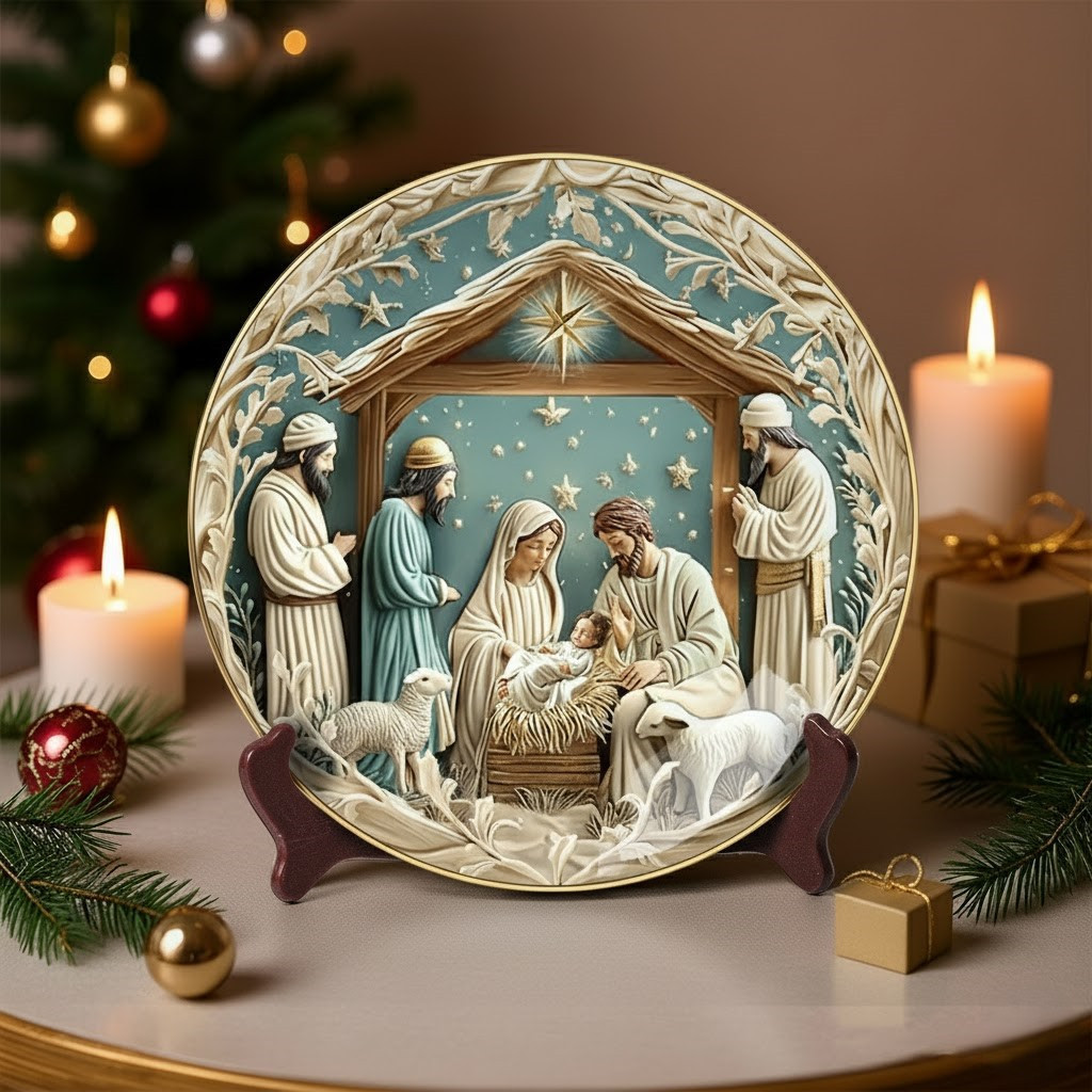 Starry Night Adoration Nativity Christmas Ceramic Plate Holy Family Gift For Women