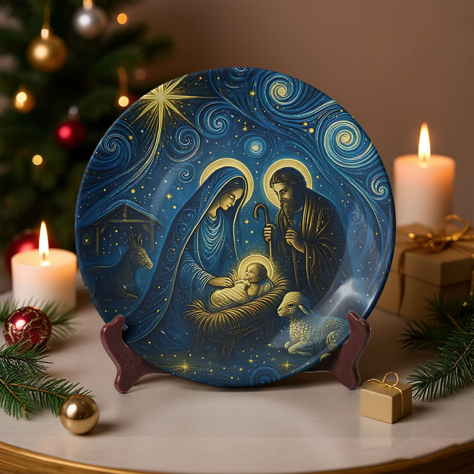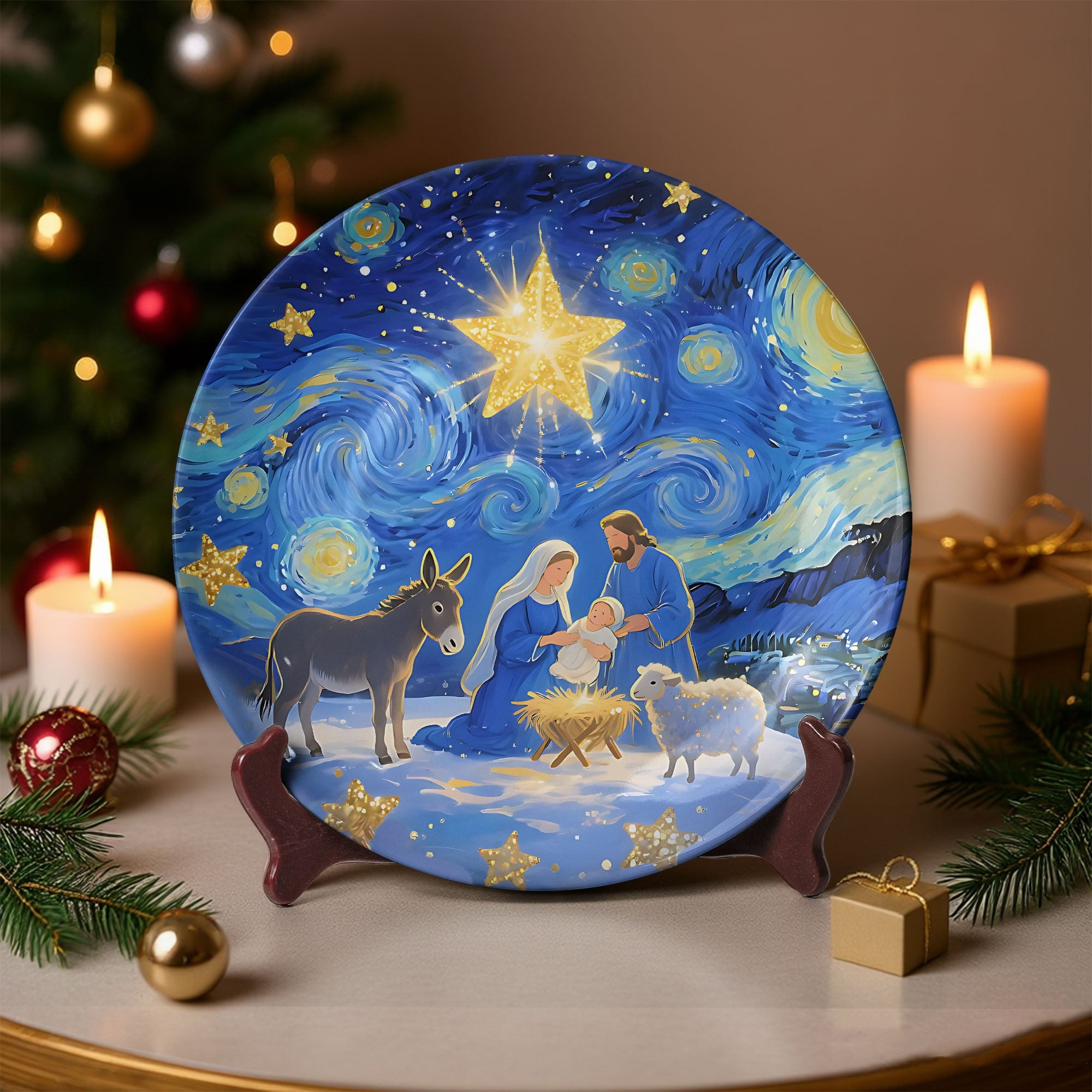 Starry Night Nativity Ceramic Plate Holy Family Starry Night Art Van Gogh Xmas Gifts