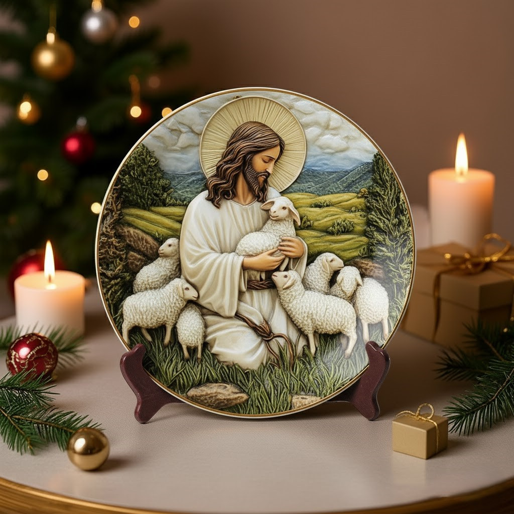 The Good Shepherd Christmas Ceramic Plate Best Xmas Presents For Shepherd Lovers
