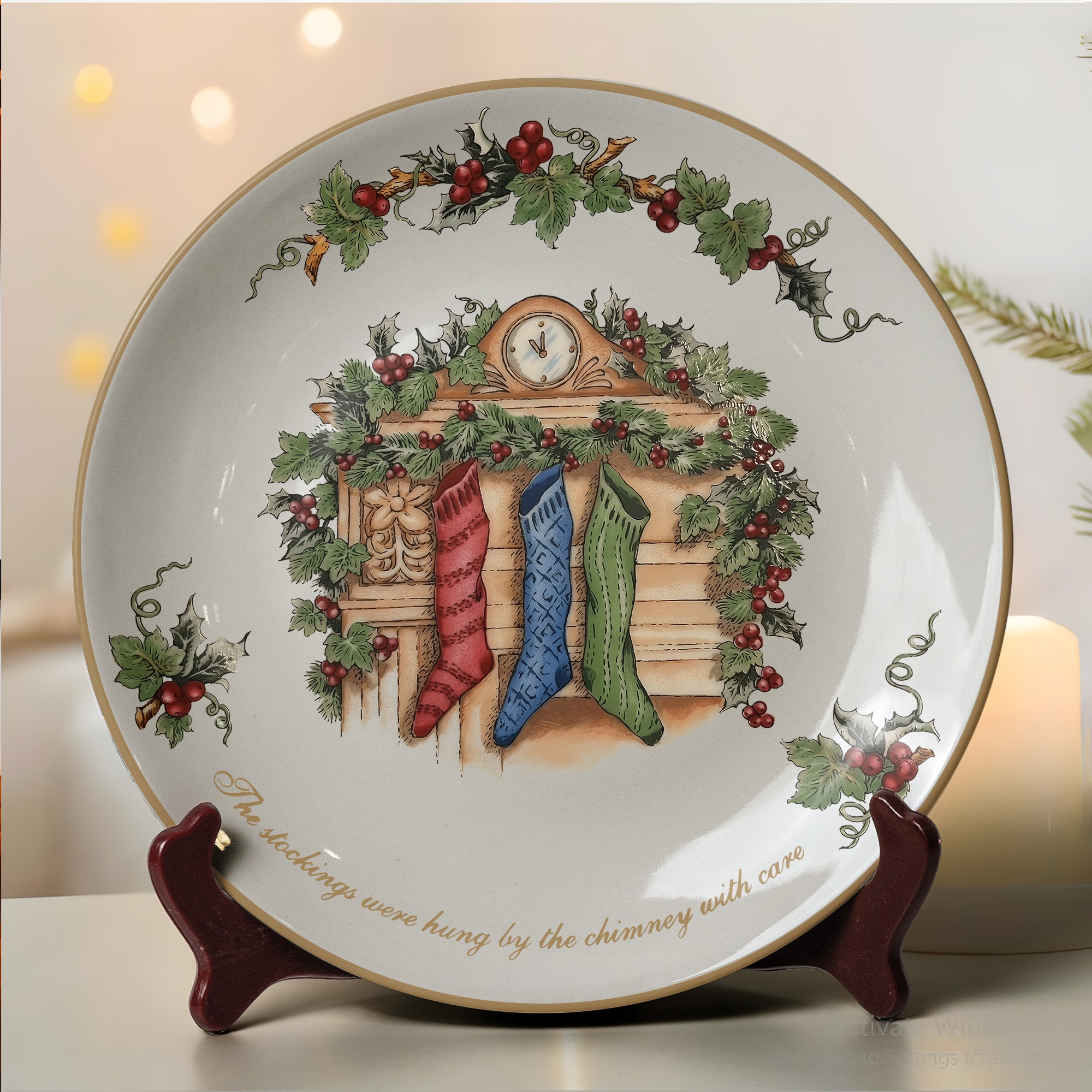 The Stockings Were Hung By The Chimney Christmas Ceramic Plate Home Decor Gifts For Holiday