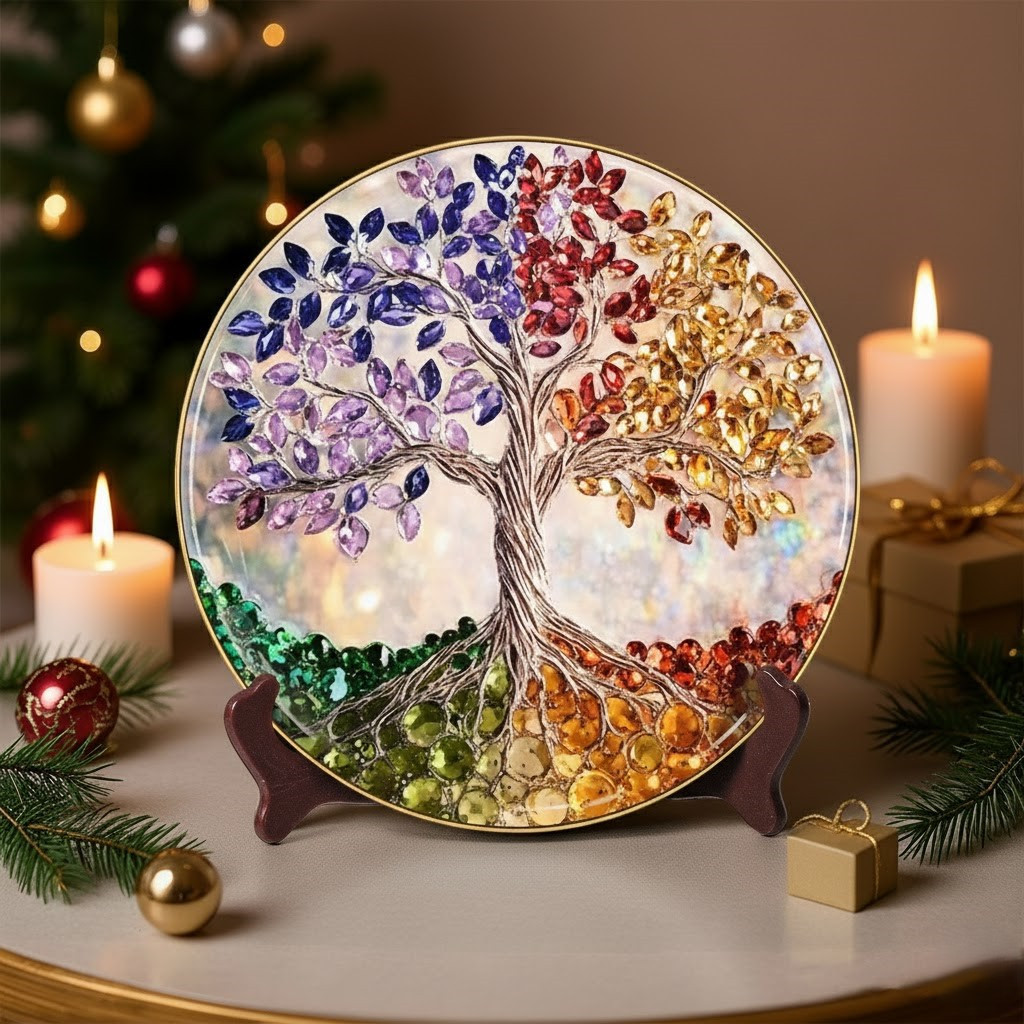 Tree Of Life Crystal Gem Christmas Ceramic Plate Colorful Four Seasons Home Decor Gifts