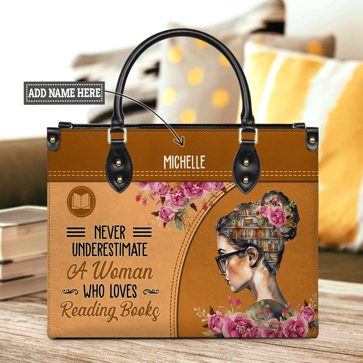 Custom Name Never Underestimate A Woman Who Loves Reading Books Leather Bag