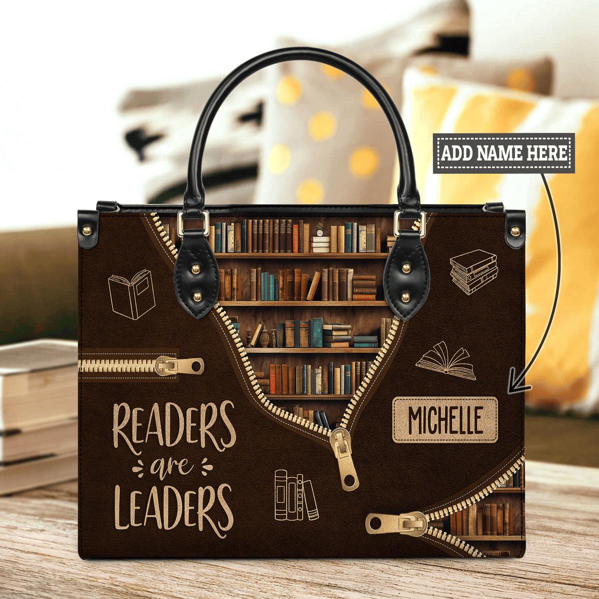 Custom Name Readers Are Leaders Leather Bag Books Quote Bag Gift for BFF