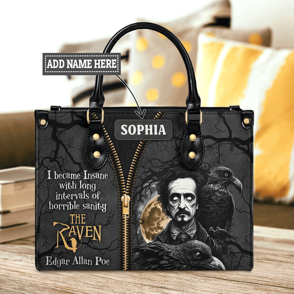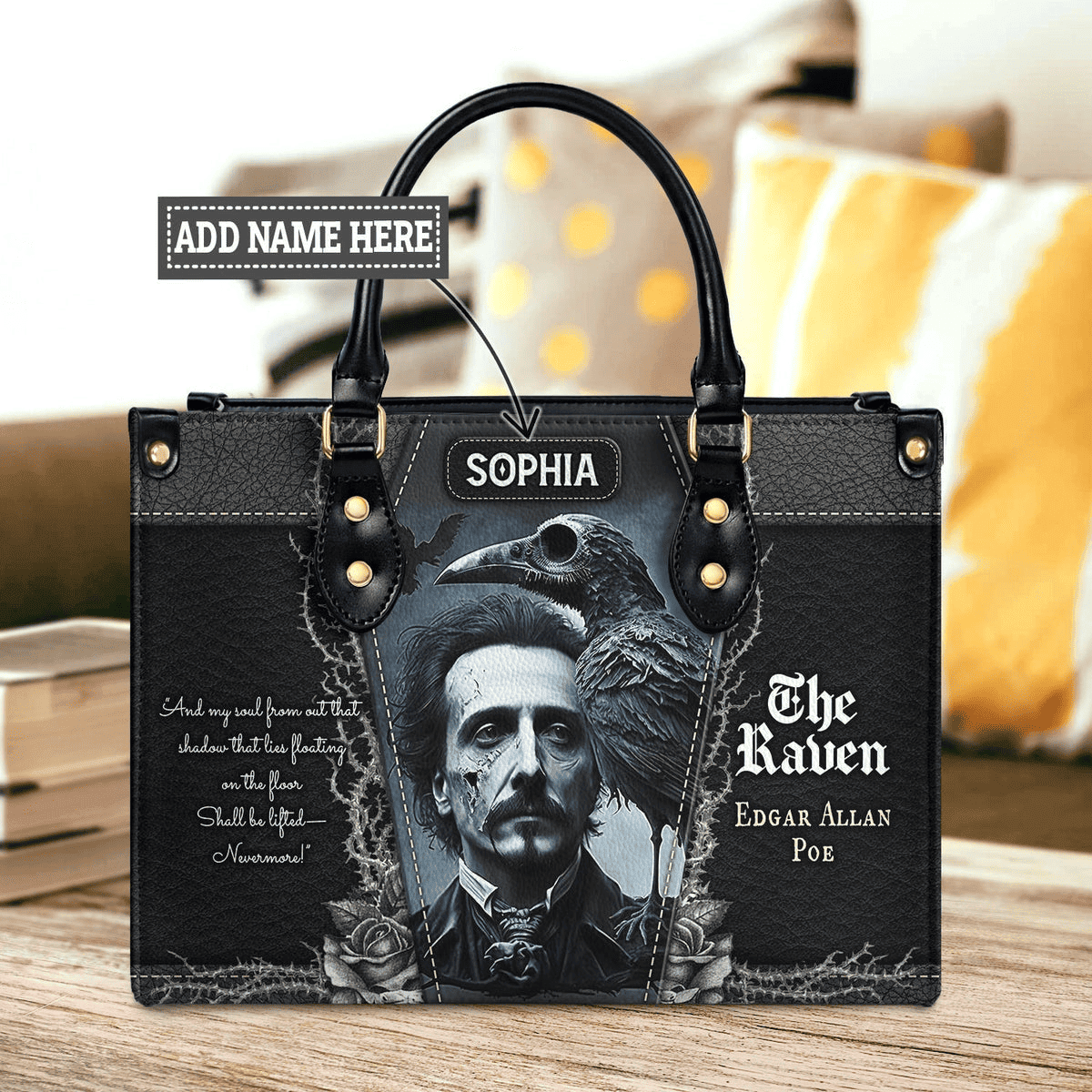 Custom Name The Raven Edgar Allan Poe Leather Bag Vintage Gothic Style Bag Gift Ideas