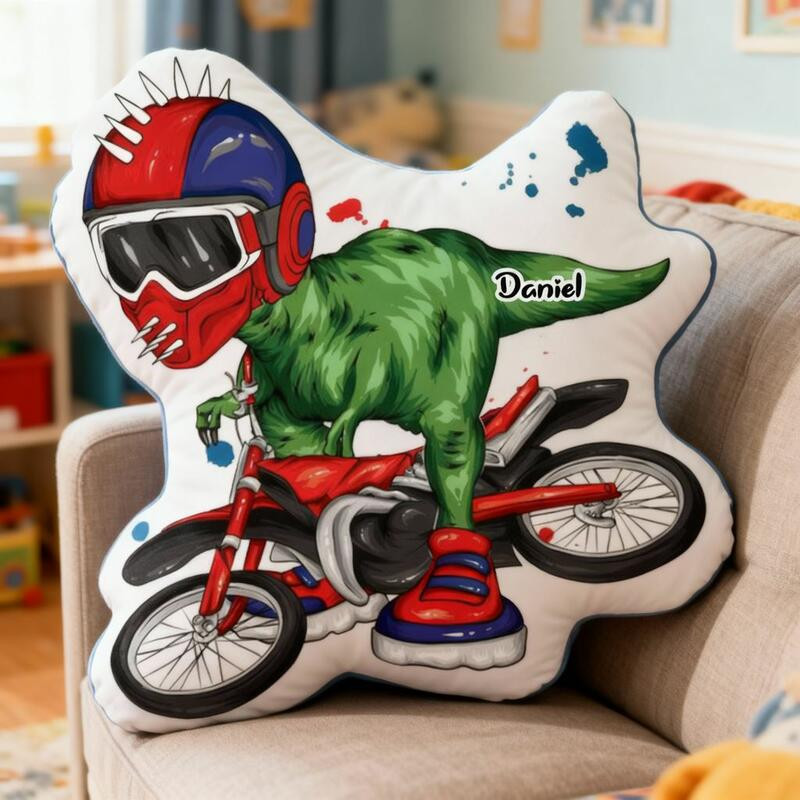 Rushgleam Custom Cartoon Dinosaur Shaped Pillow Dino Ride Bike Home Decor Gift For Dinosaur Lovers