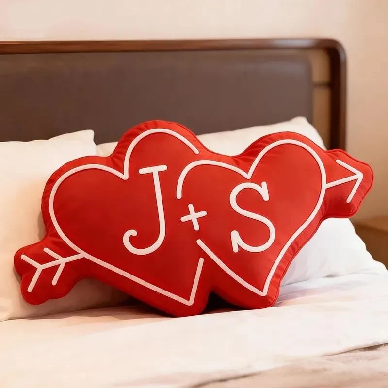 Rushgleam Personalized Arrow Through Hearts Shaped Pillow Valentine Decor Gift For Couples