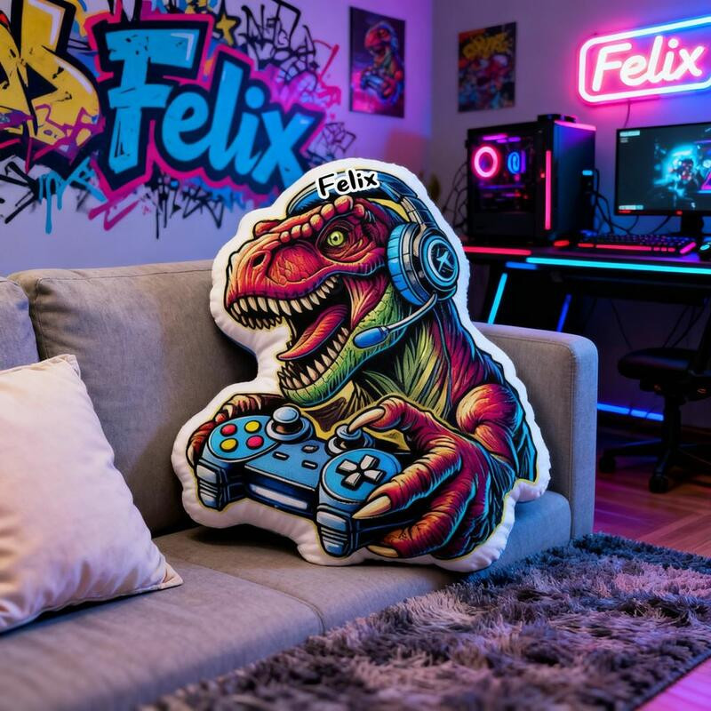 Rushgleam Personalized Dinosaur Play Game Shaped Pillow Dino Room Decor Present Ideas For Gamer