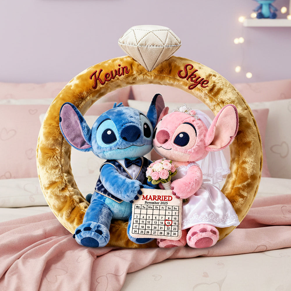 Rushgleam Personalized Stitch Couple With Donut Shaped Pillow Decor Gift Ideas For Her