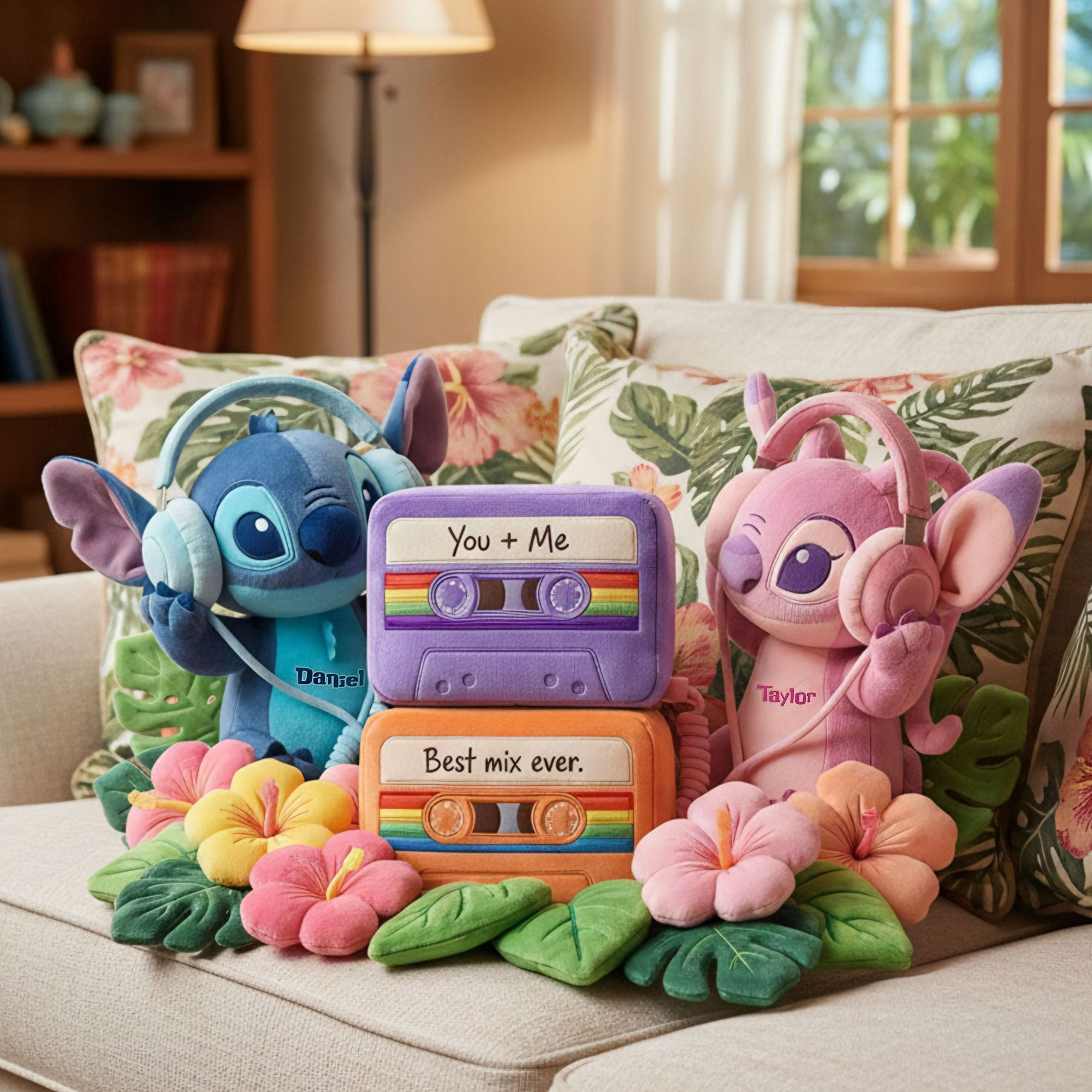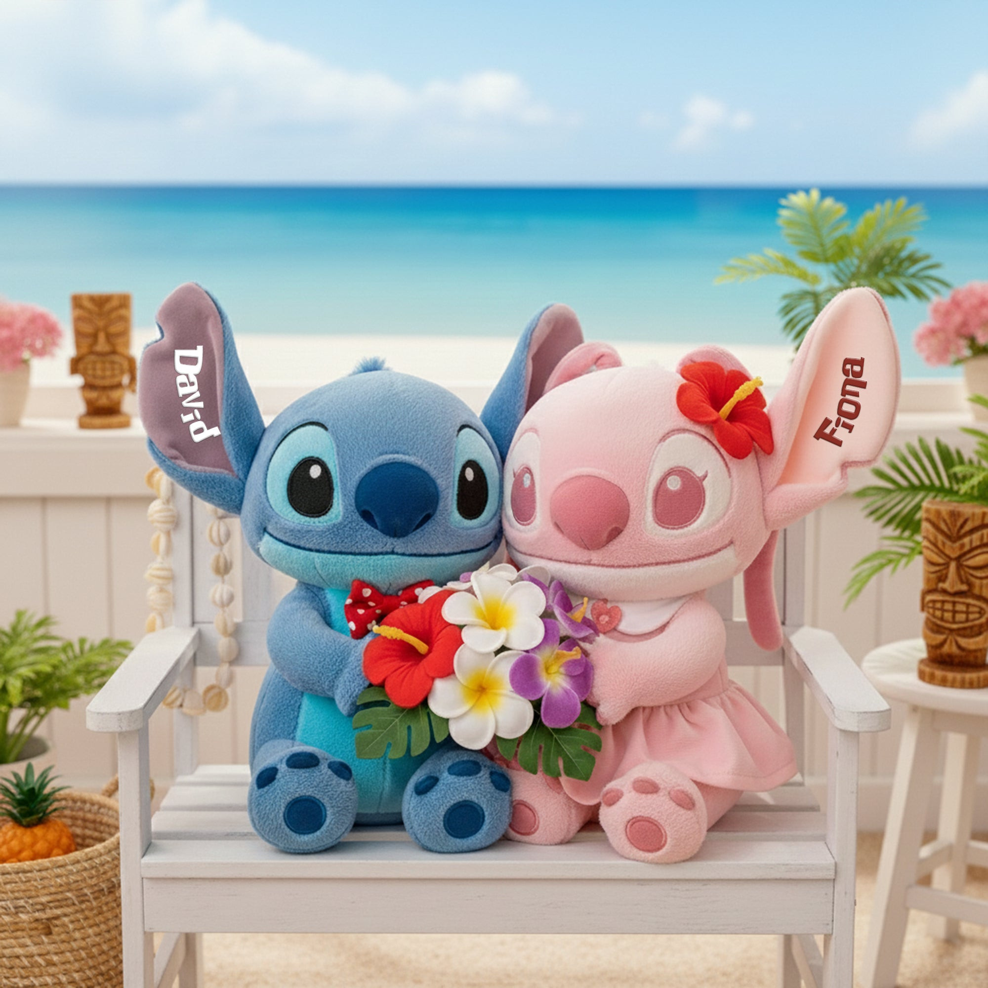 Rushgleam Personalized Stitch Couple Shaped Pillow Island Tropical Decoration Gift For Stitch Lovers
