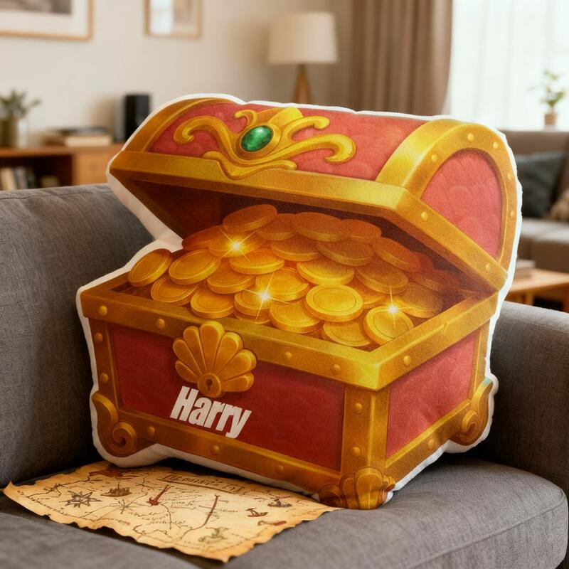 Rushgleam Personalized Treasure Chest Shaped Pillow Room Decor Gift For Treasure Hunt Game Lovers