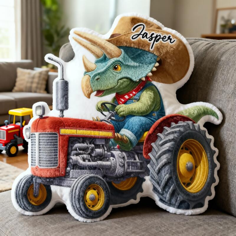 Rushgleam Personalized Triceratops Driving A Truck Shaped Pillow Dinosaur Decor Gift For Truck Lovers