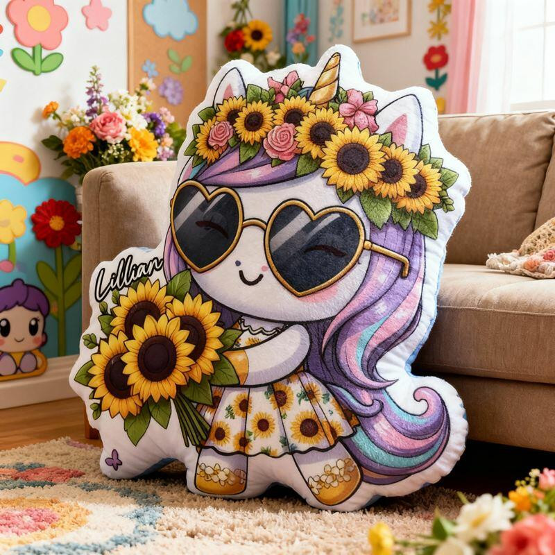 Rushgleam Personalized Unicorn And Sunflower Shaped Pillow Home Decoration Ideas For Daughter
