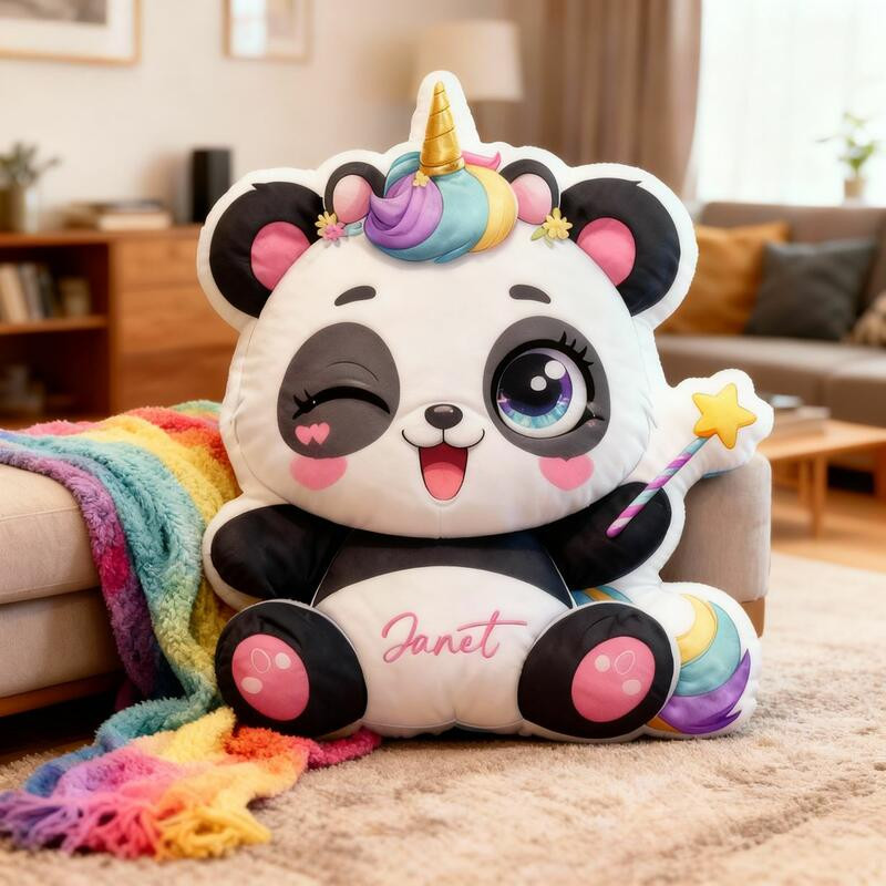 Rushgleam Personalized Unicorn Panda Shaped Pillow Top Cute Room Decor Gift Ideas For Animal Lover