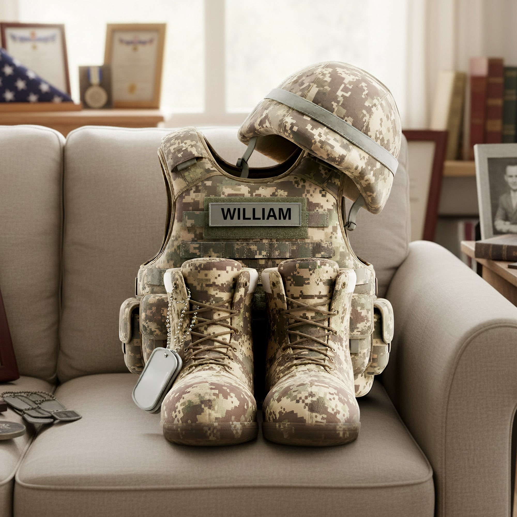 Rushgleam Personalized Veteran Clothes Shaped Pillow Honoring Heroes Decoration Gift For Veterans