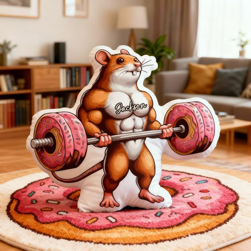 Rushgleam Personalized Weightlifting Mouse Shaped Pillow Cartoon Animal Decor Gift For Sport Lovers