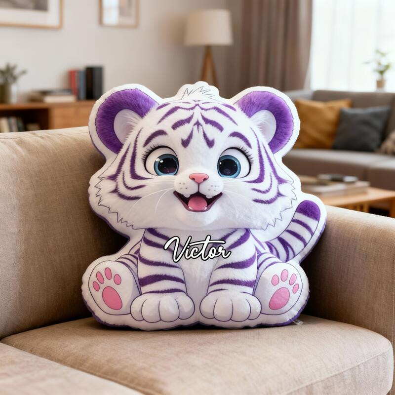 Rushgleam Personalized White Tiger Shaped Pillow Best Decoration Gift For Tiger Lovers