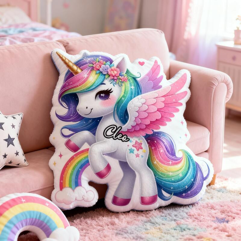 Rushgleam Personalized Winged And Rainbow Unicorn Shaped Pillow Room Decoration Gift For Girlfriend