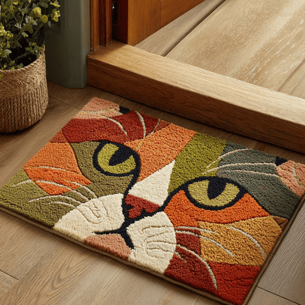Abstract Cat Doormat Artistic Animal Welcome Mat Indoor Outdoor