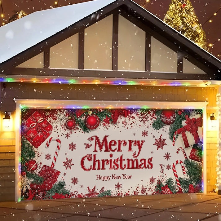 Rushgleam Merry Christmas Garage Door Cover Happy New Year Gifts And Candy Canes Festival Decor Gifts