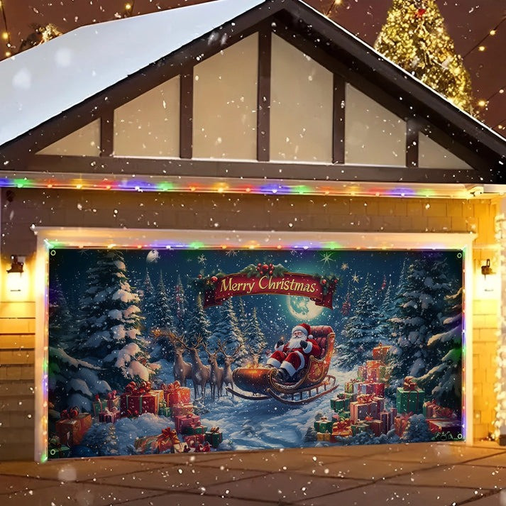Rushgleam Merry Christmas Garage Door Cover Eve Sleigh Ride Xmas Festival House Decor Gifts