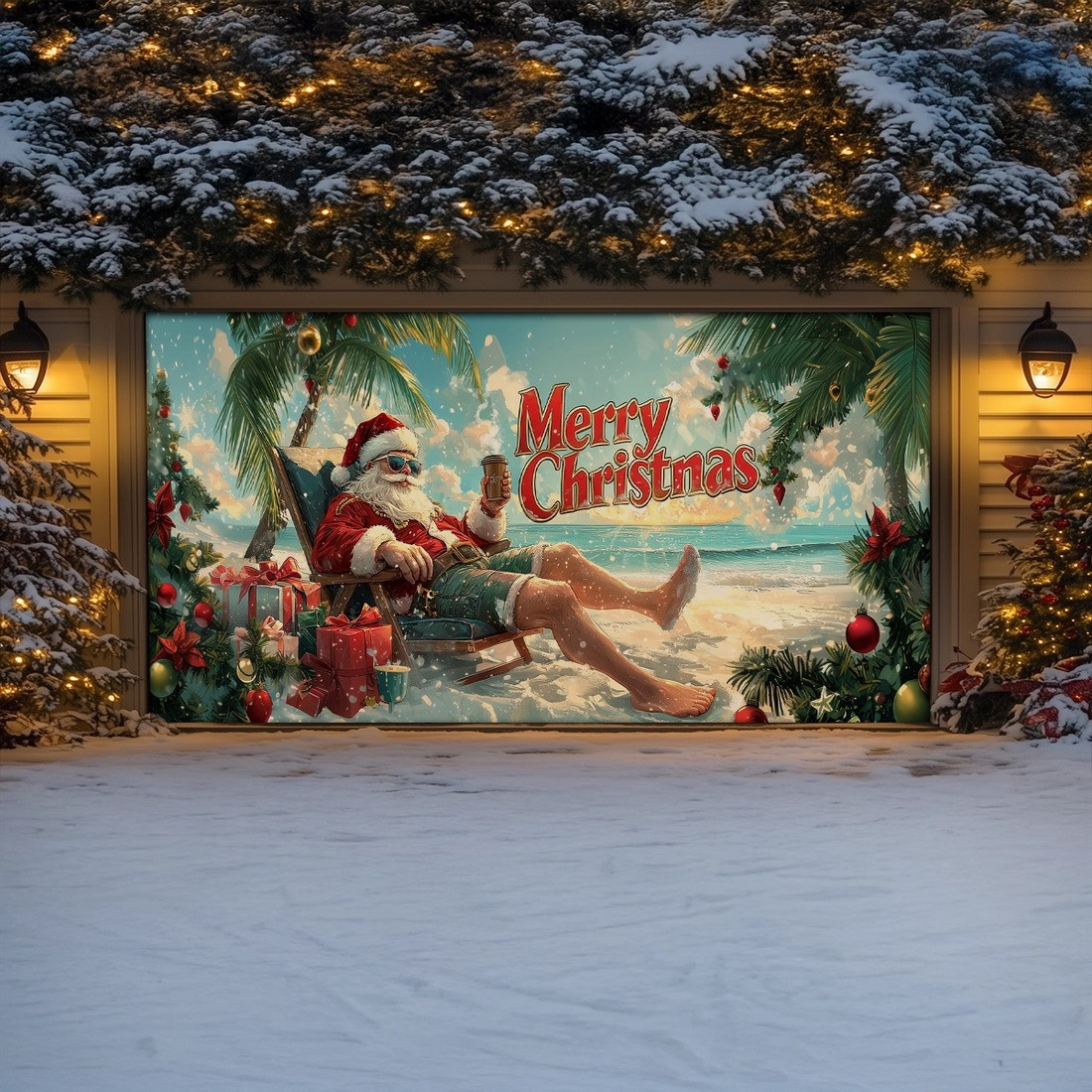 Rushgleam Merry Christmas Garage Door Cover Santa Relaxing On Beach Funny Outside Decor Xmas Presents